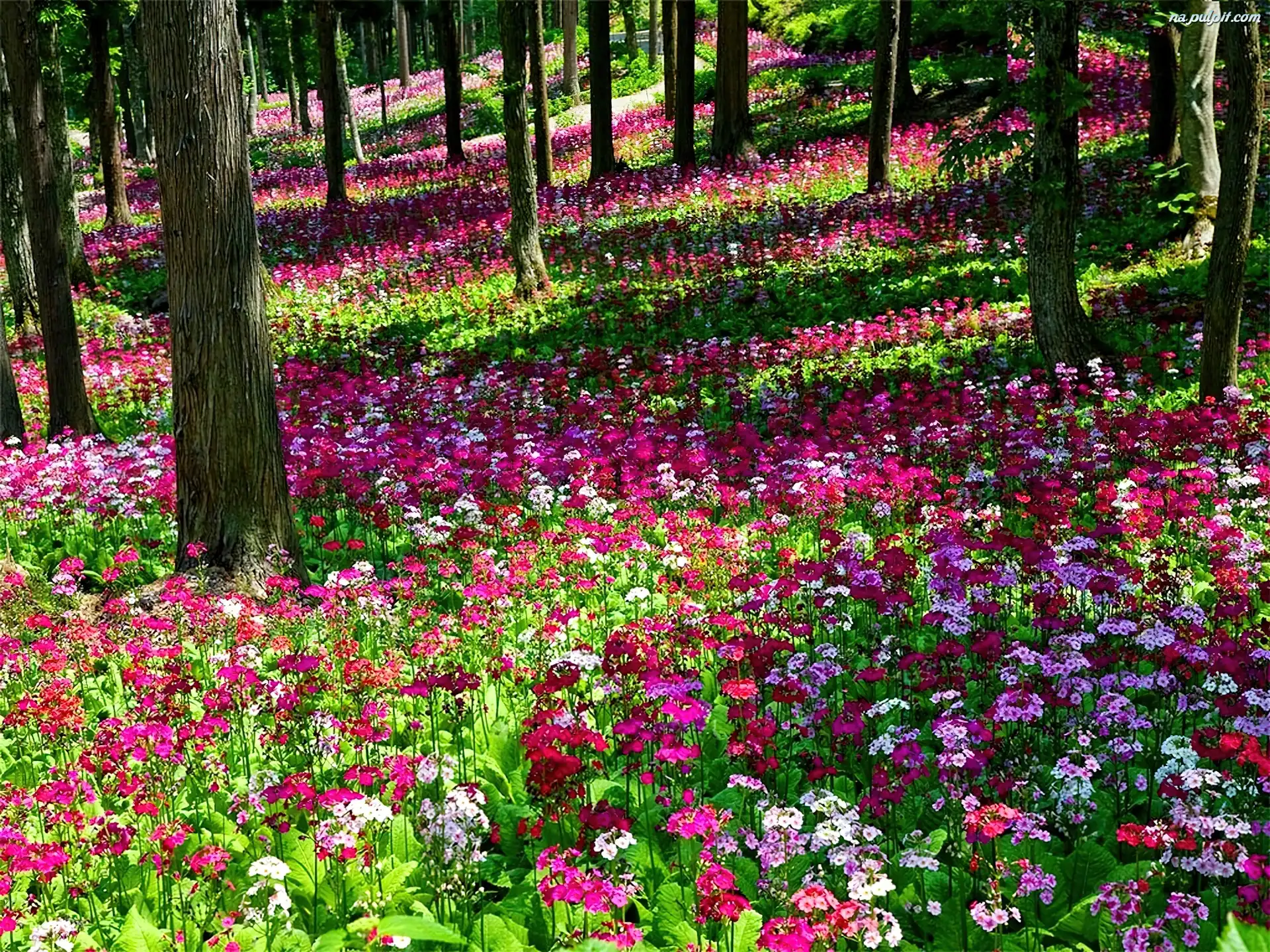Kwiaty, Łąka, Drzewa, Kolorowe Na Pulpit