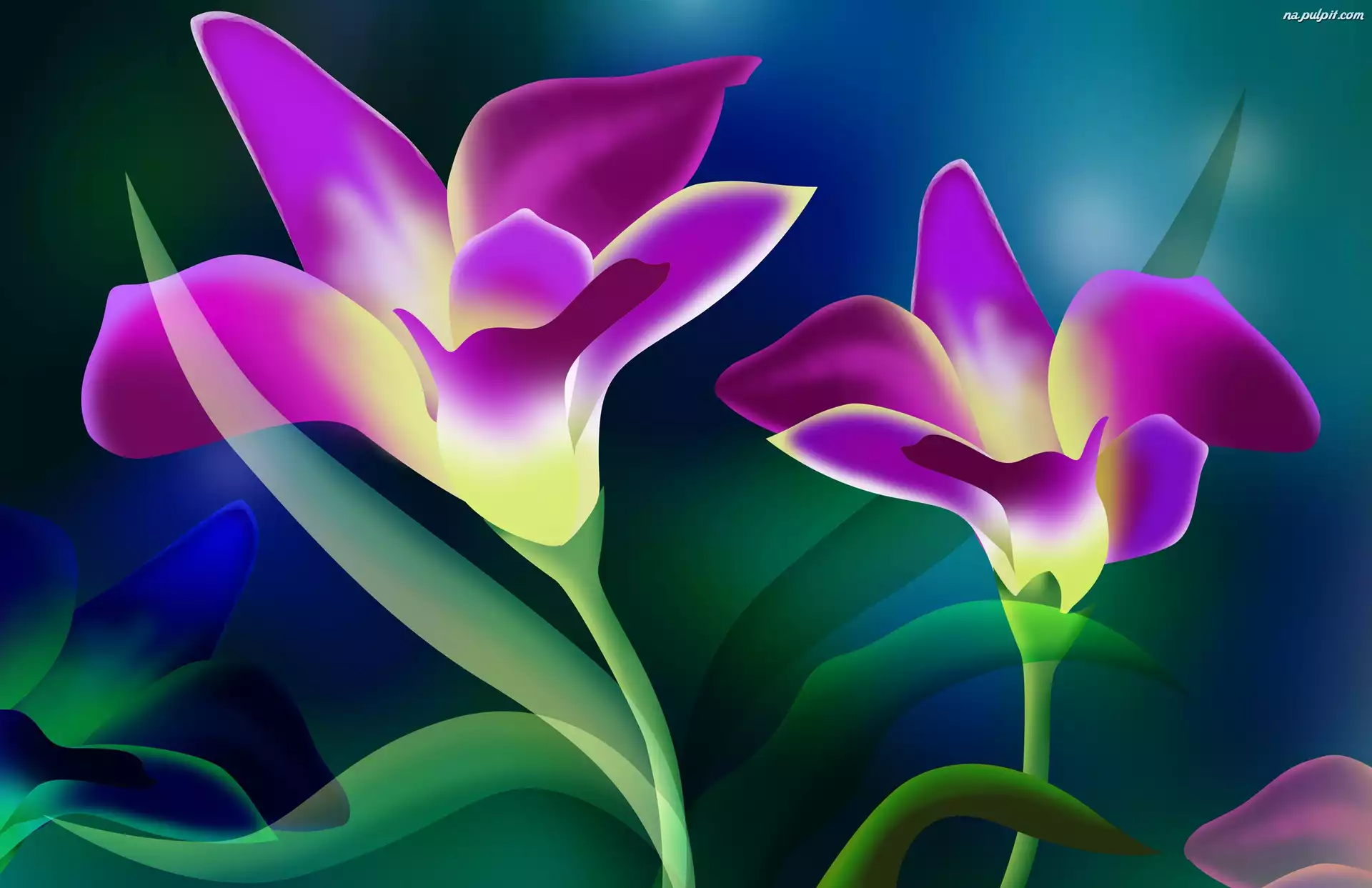 Kwiaty, Różowo, Dwa, Żółte Na Pulpit