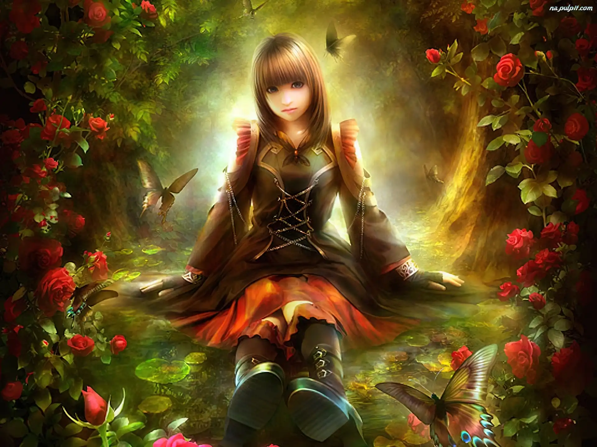 Kwiaty, Anioł, Dziewczyna, Motyl Na Pulpit