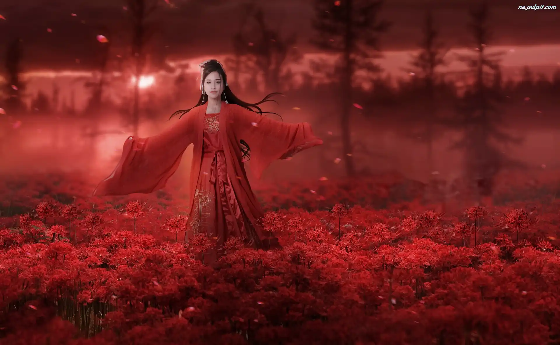 Kwiaty, Azjatka, Dziewczyna, Czerwone Na Pulpit