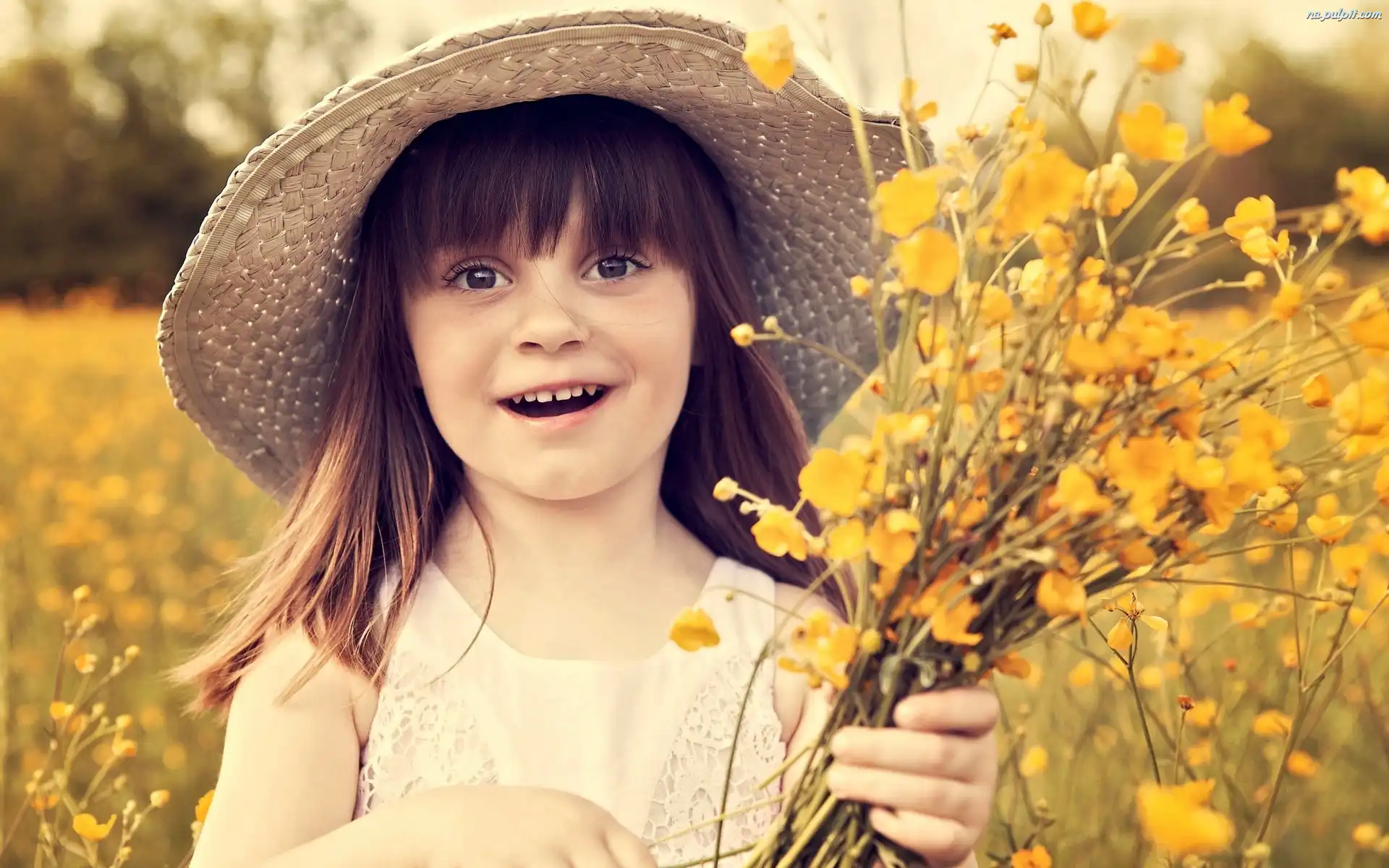 Kwiaty, Kapelusz, Dziewczynka, Żółte Na Pulpit