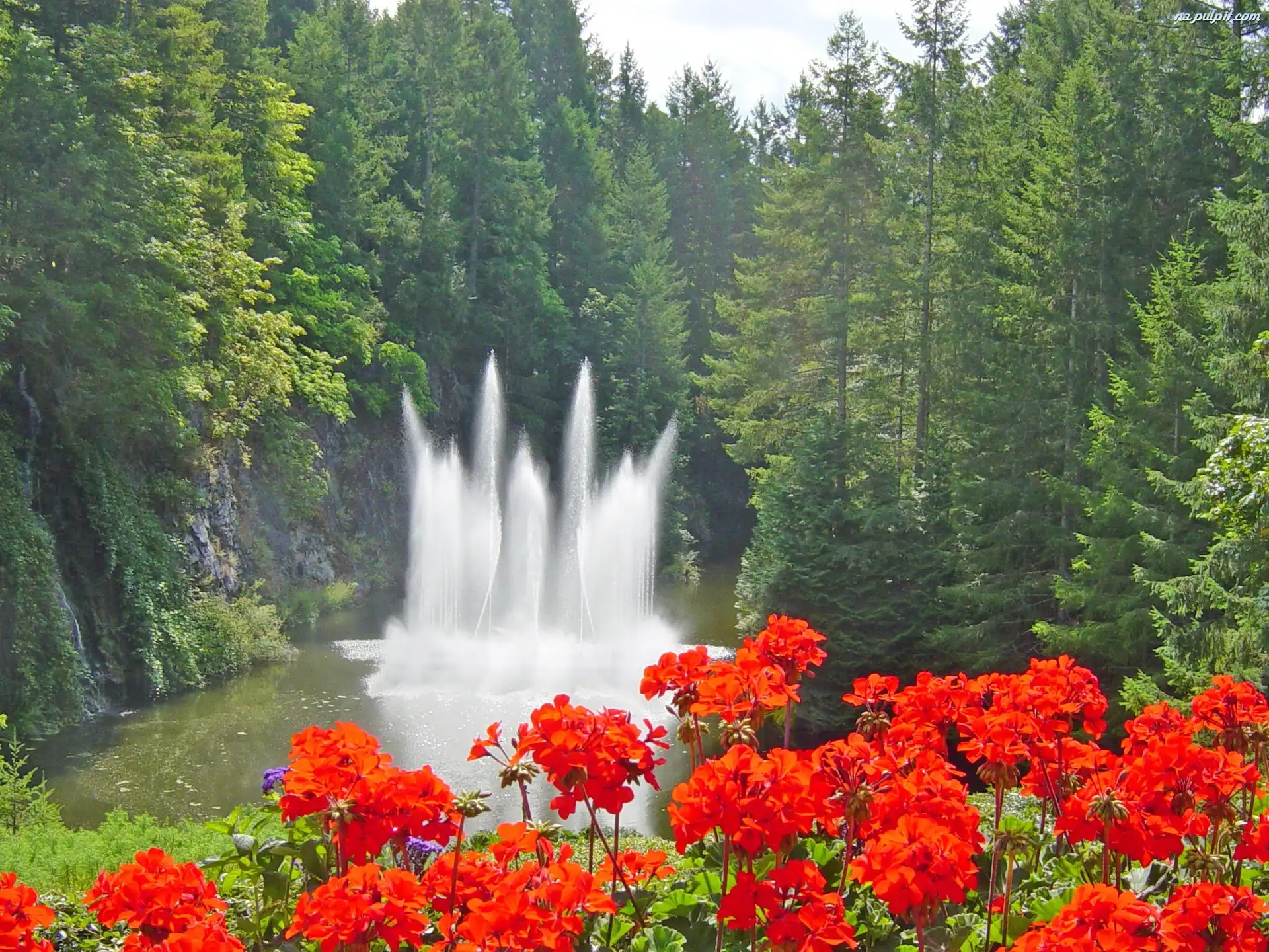 Kwiaty, Jeziorko, Fontanna, Las Na Pulpit