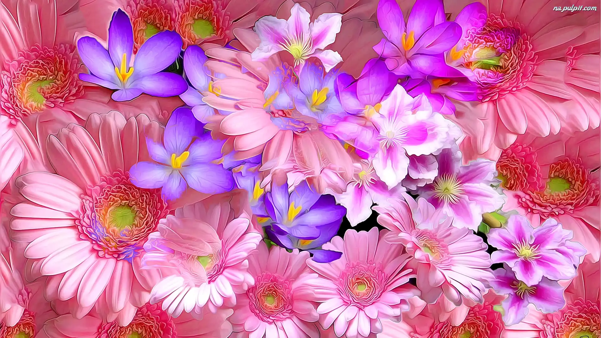 Kwiaty, Różowe, Fractalius, Niebieskie Na Pulpit