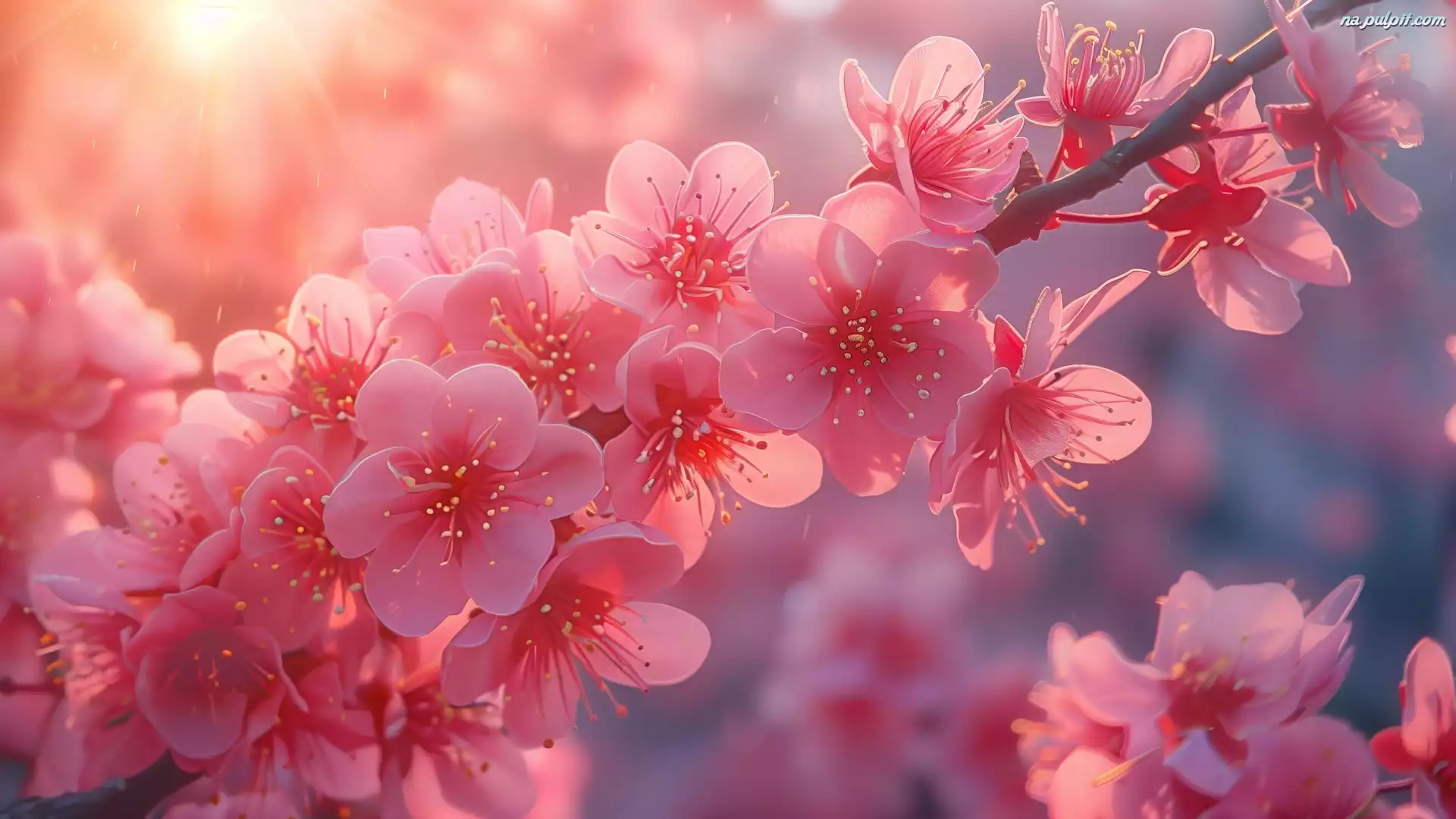 Różowe, Kwiaty, Gałąź, Drzewo owocowe Na Pulpit