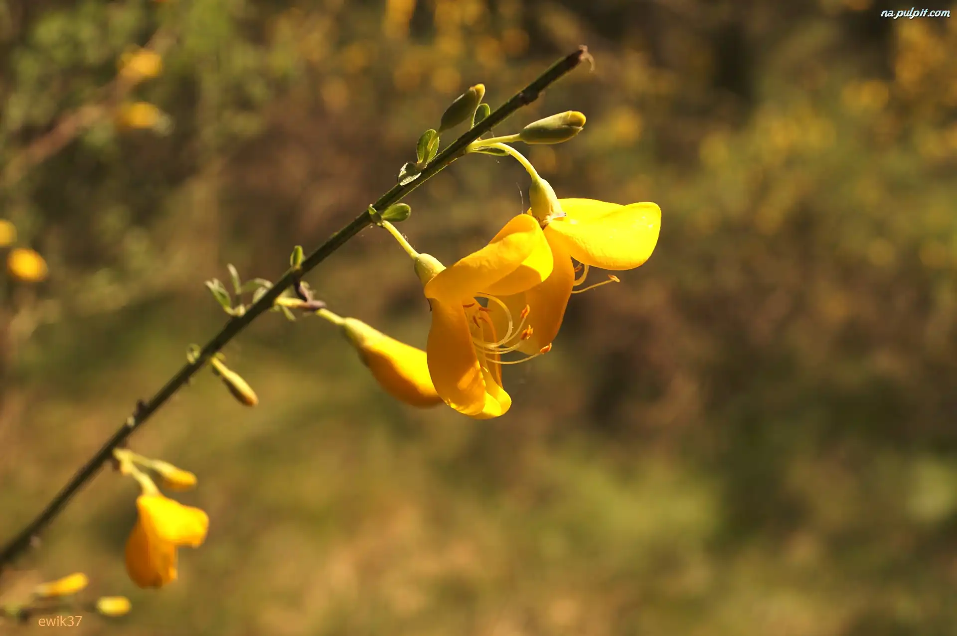 Kwiaty, Żarnowiec miotlasty, Gałązka, Żółte