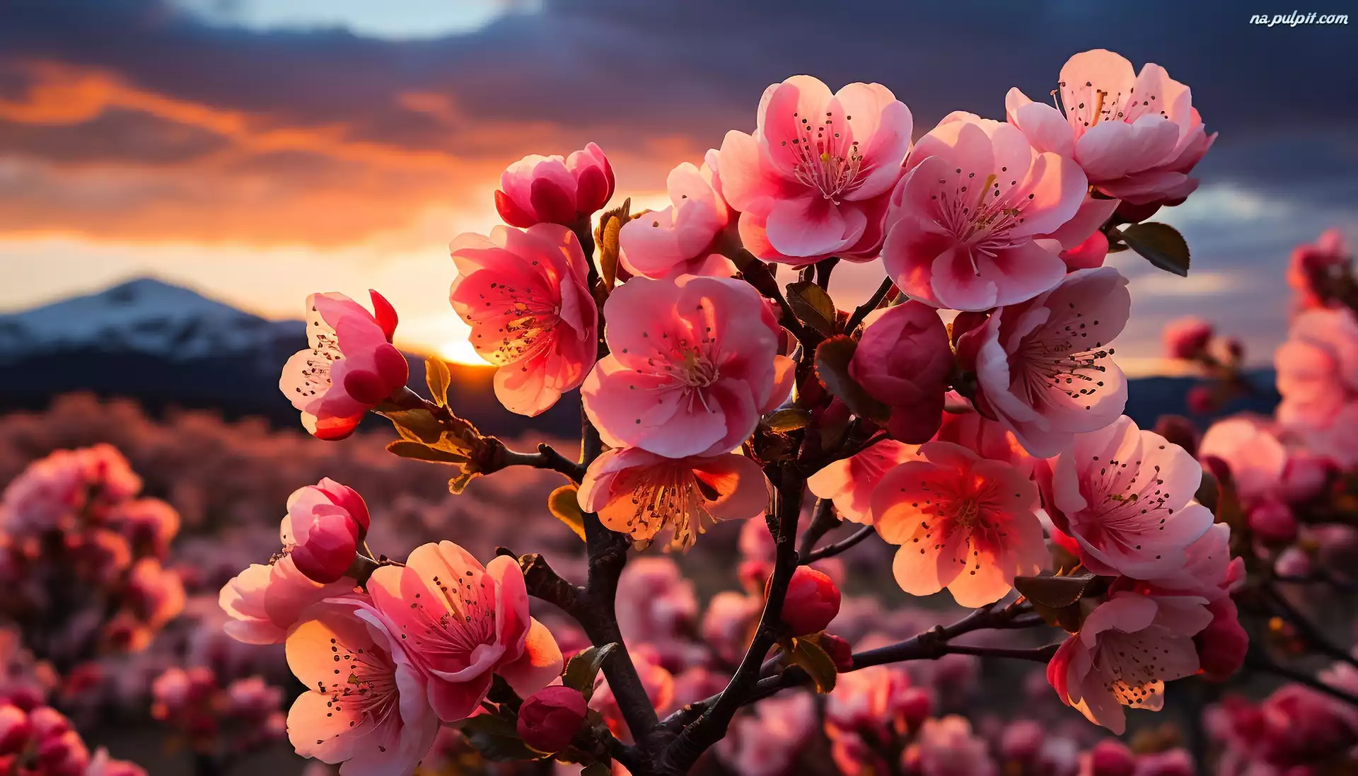 Drzewo owocowe, Różowe, Kwiaty, 2D, Gałązka Na Pulpit