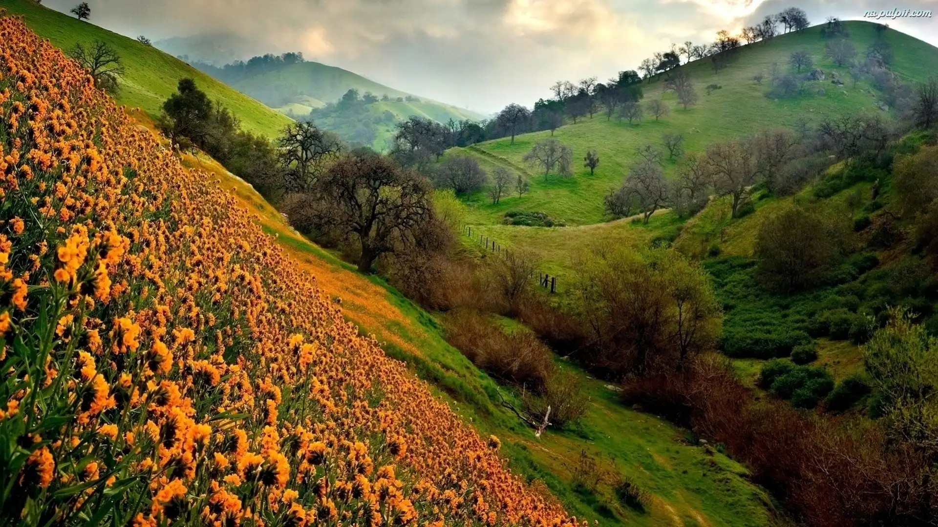 Kwiaty, Łąka, Góry, Żółte Na Pulpit
