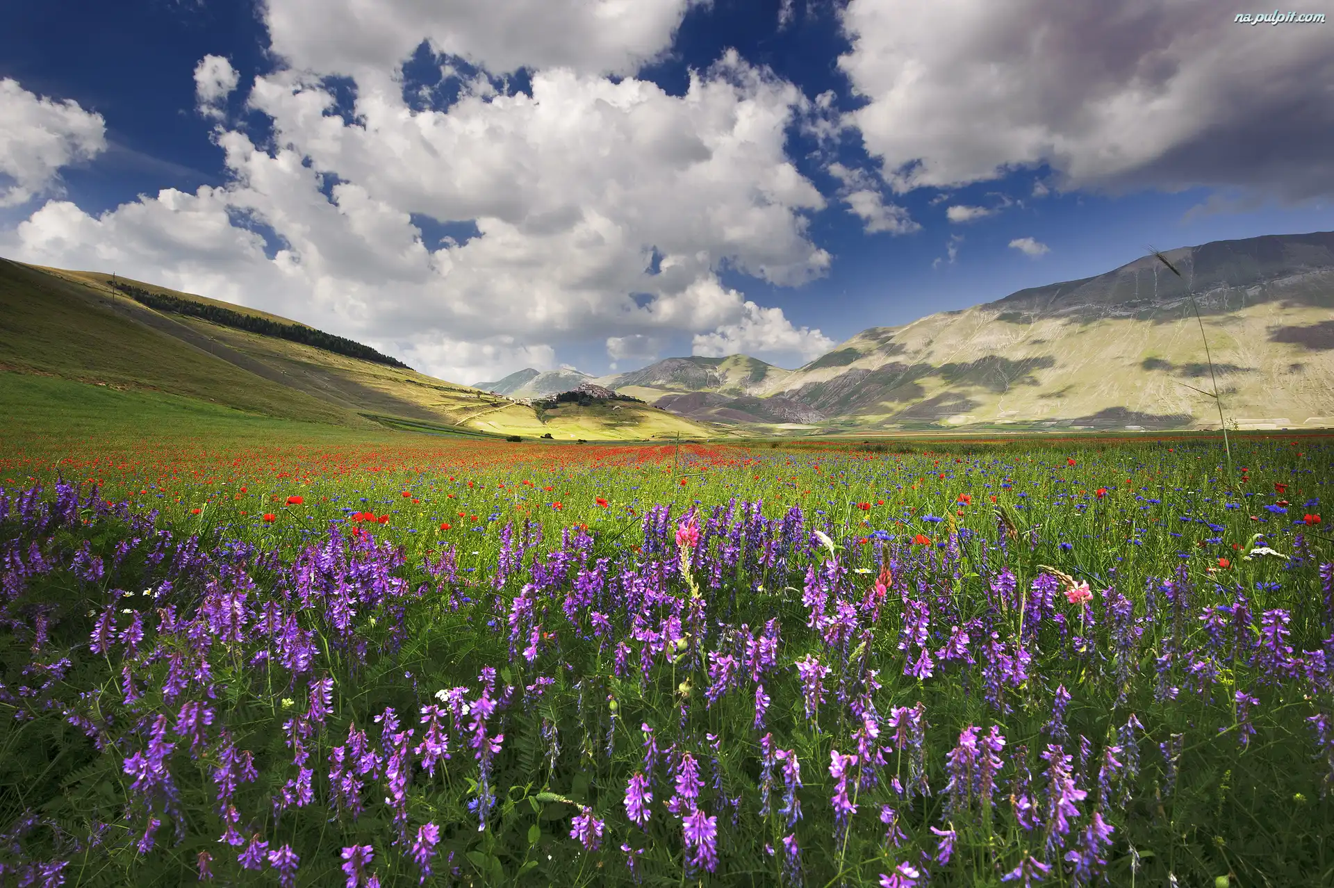 Kwiaty, Białe, Góry, Chmury Na Pulpit