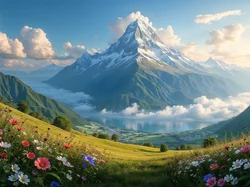 Góry, Jezioro, Łąka, Kwiaty Na Pulpit