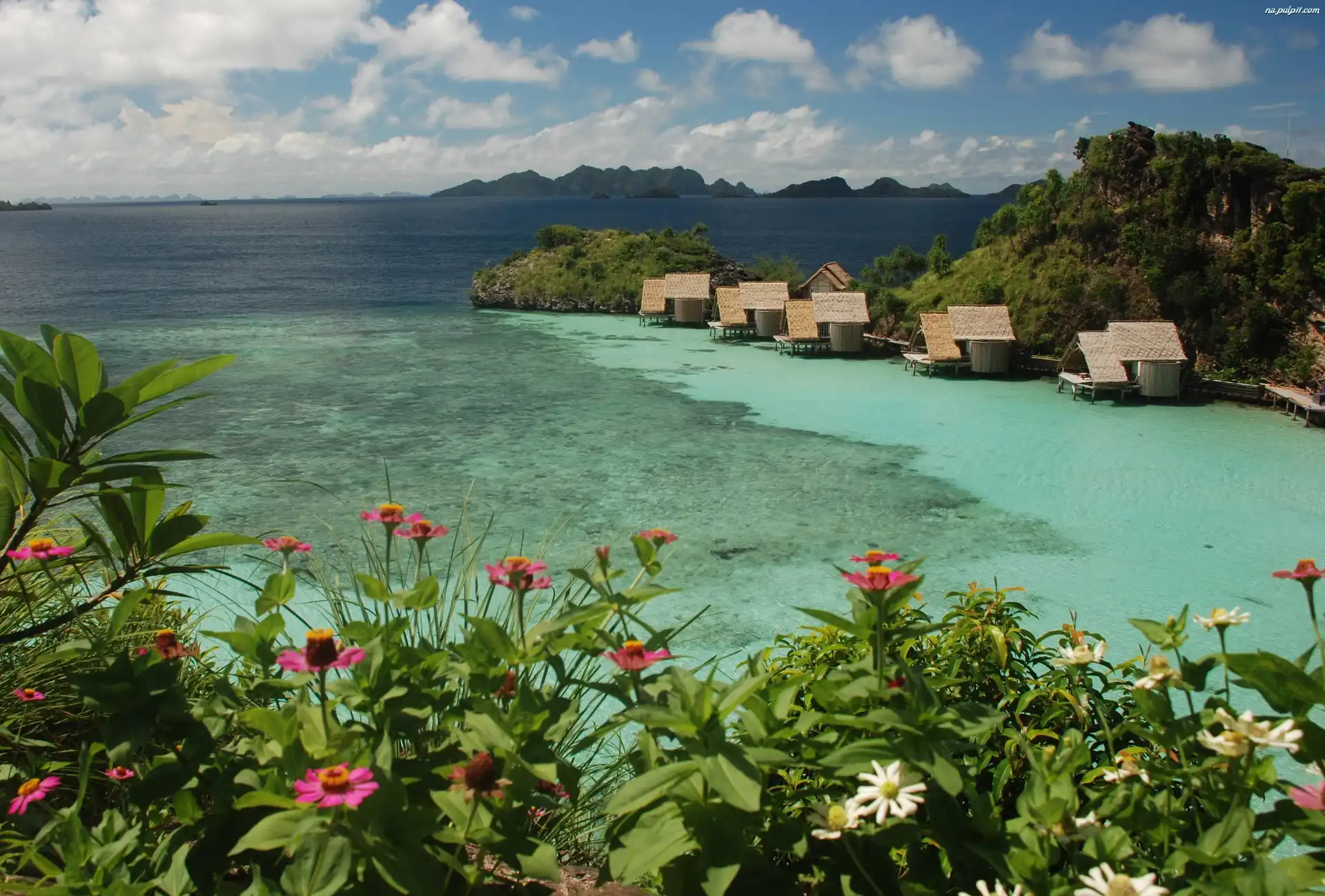 Kwiaty, Morze, Góry, Domki Na Pulpit