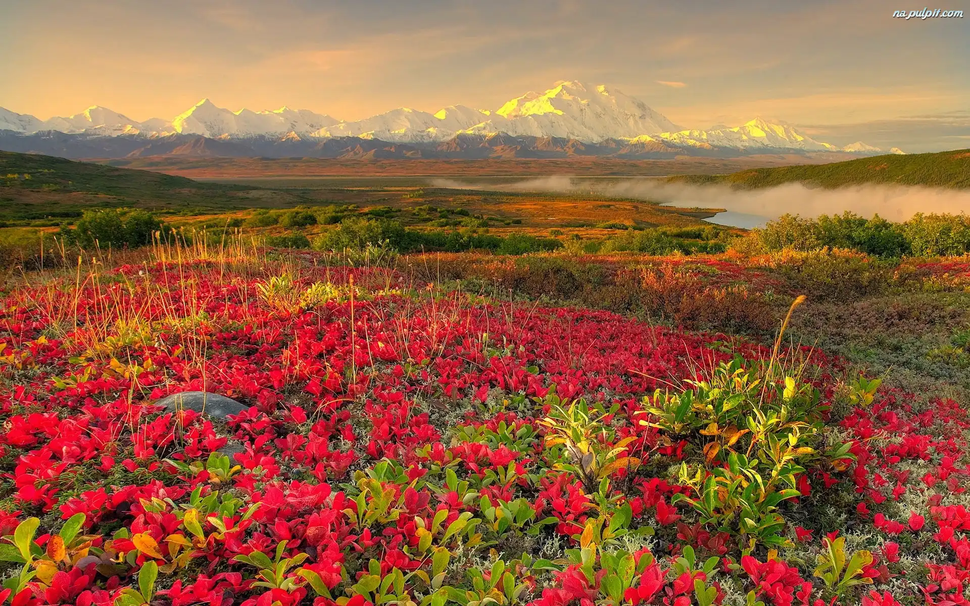 Kwiaty, Rzeka, Góry, Łąka Na Pulpit