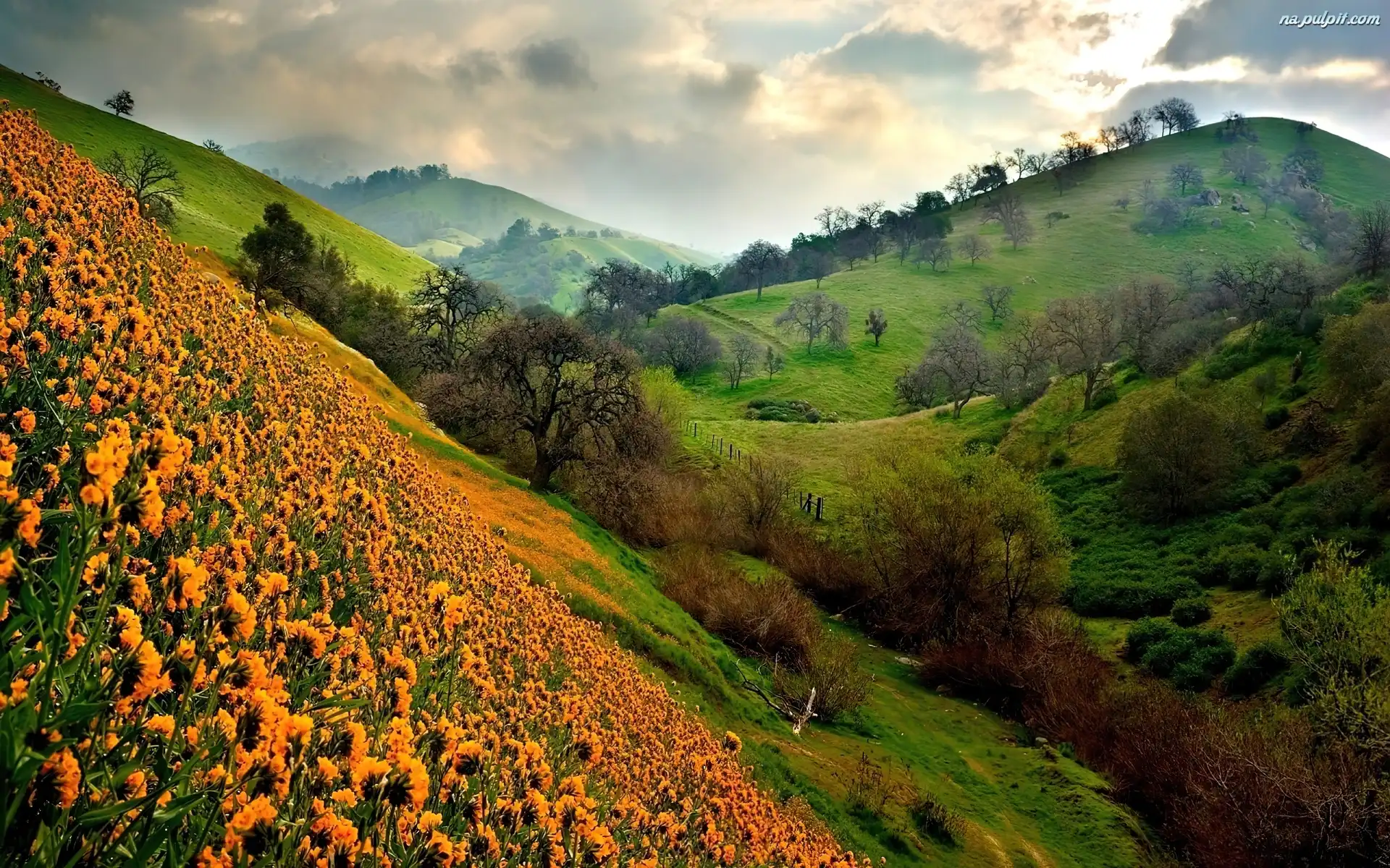 Kwiaty, Niebo, Zachmurzone, Góry, Stok Na Pulpit