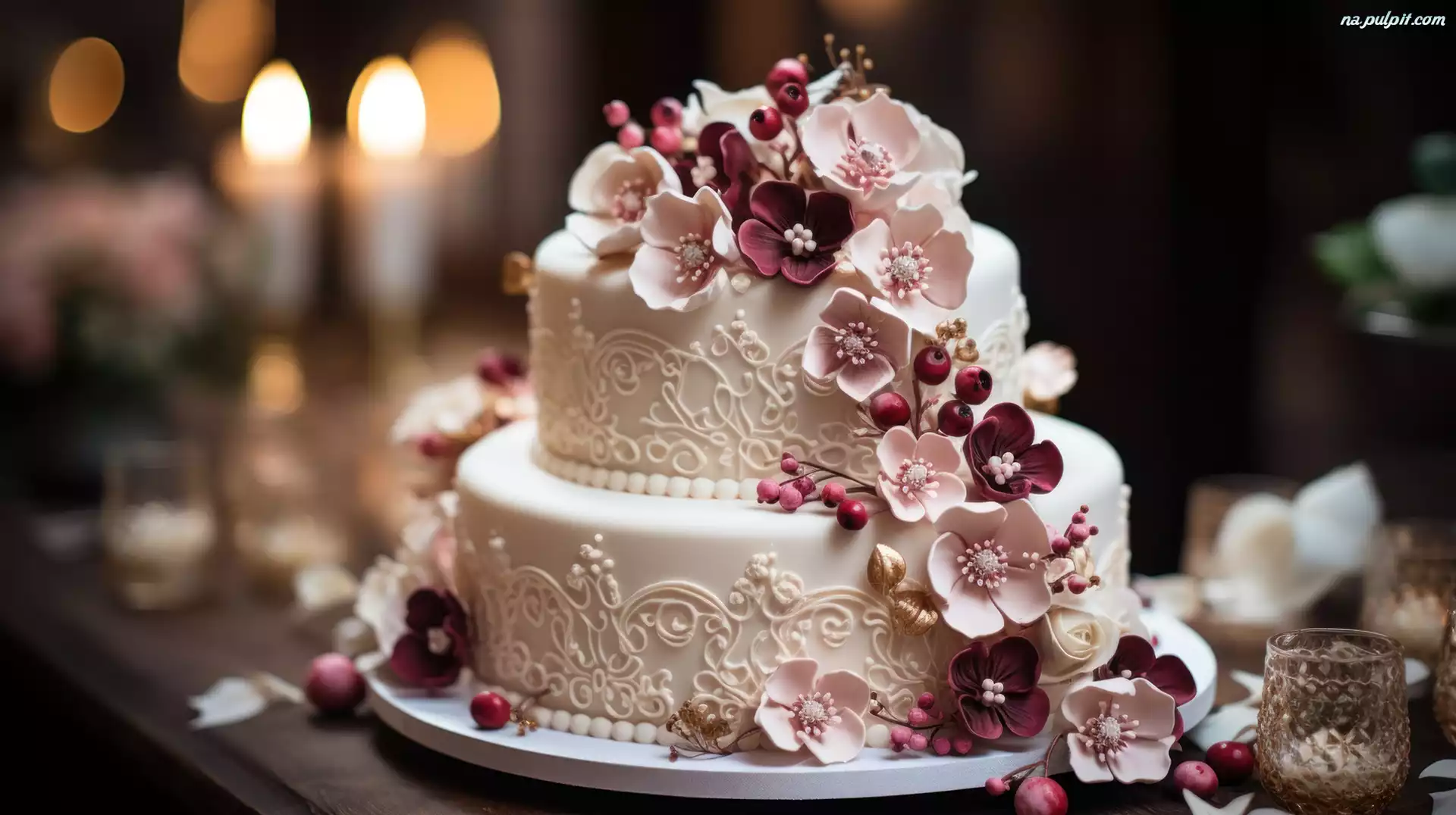 Ozdoby, Tort, Lukrowe, Kwiaty, Weselny, Grafika