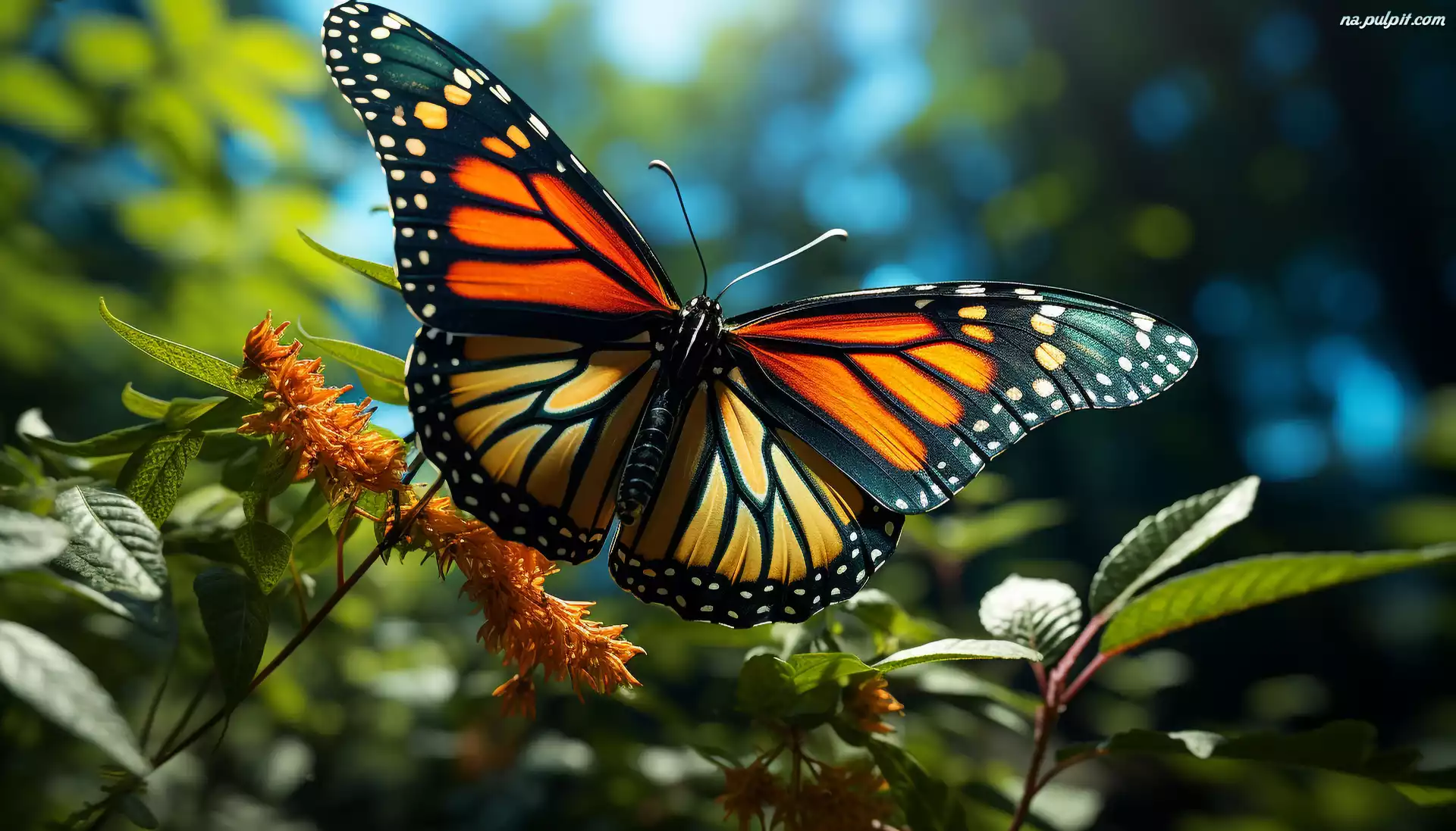 Liście, Owad, Motyl, Kwiaty, Kolorowy, Grafika