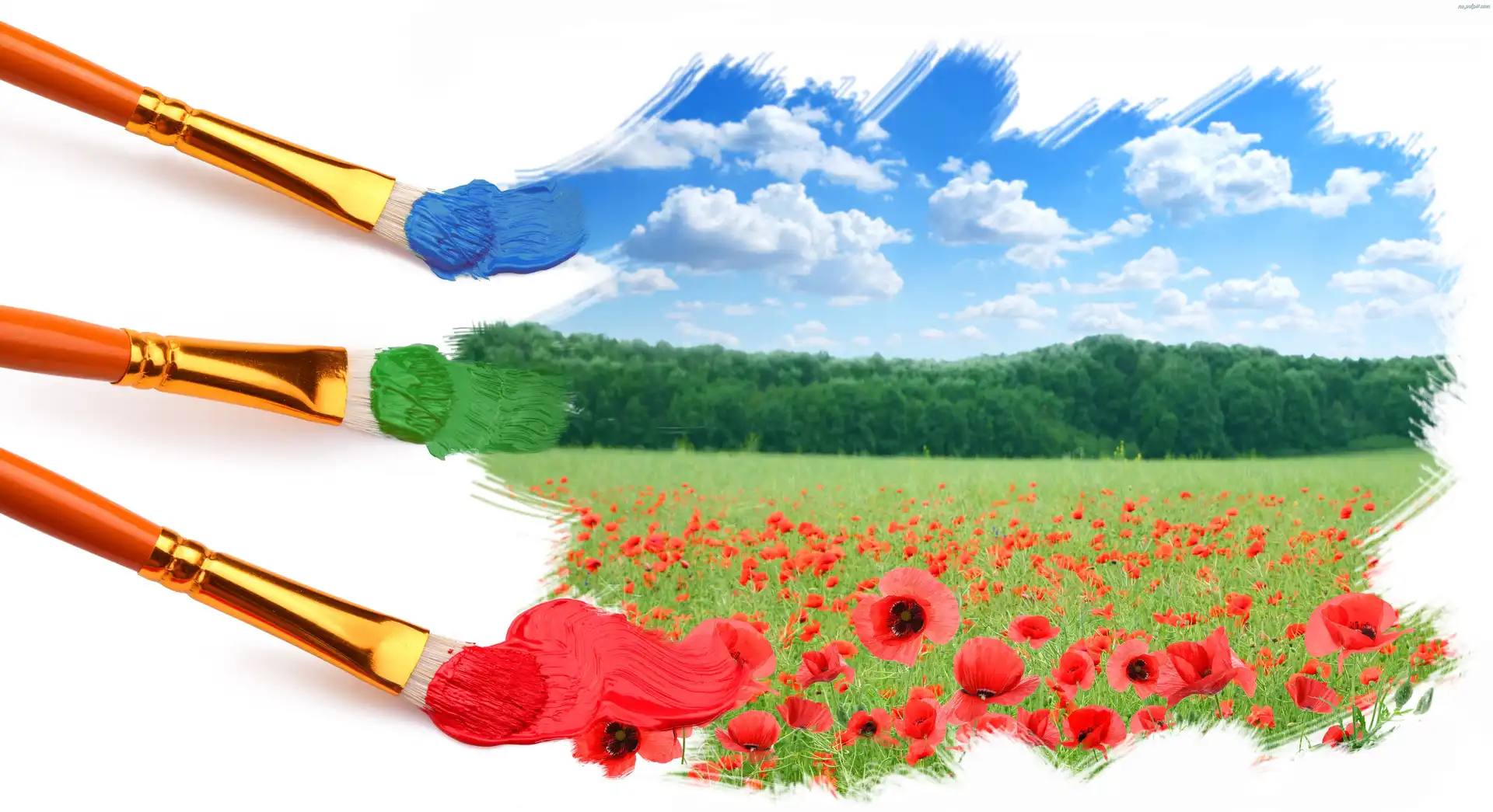 Kwiaty, Pędzle, Grafika, Pejzaż Na Pulpit