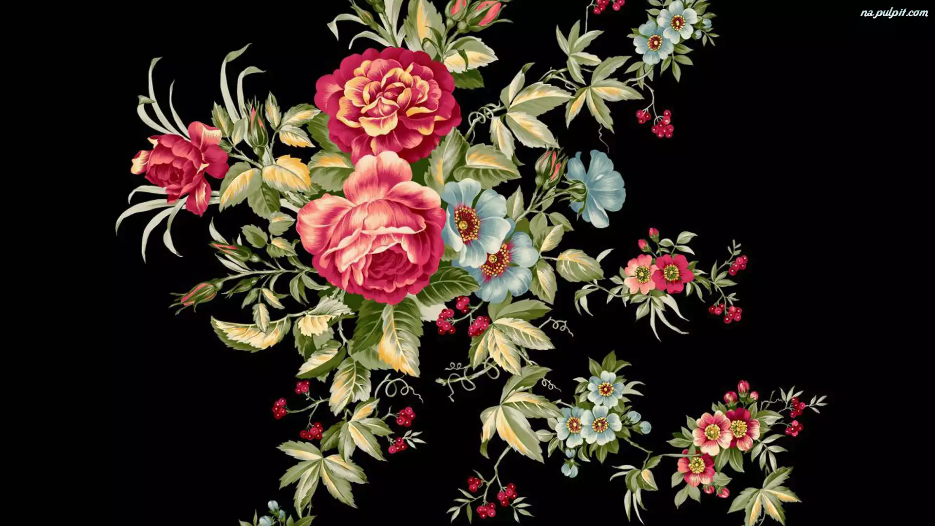 Kwiaty, Czarne, Tło, Kolorowe, Grafika, Róże Na Pulpit