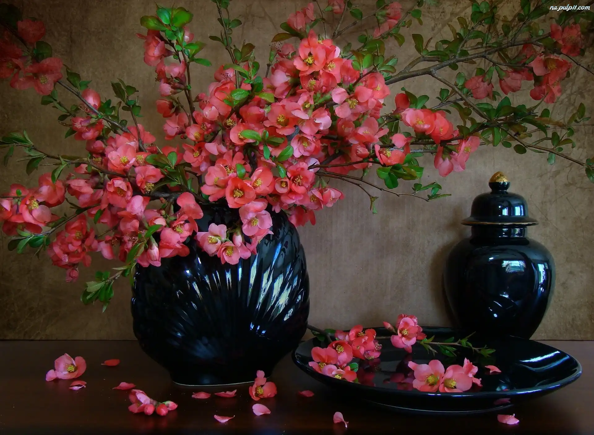 Kwiaty, Porcelana, Granatowa, Różowe Na Pulpit