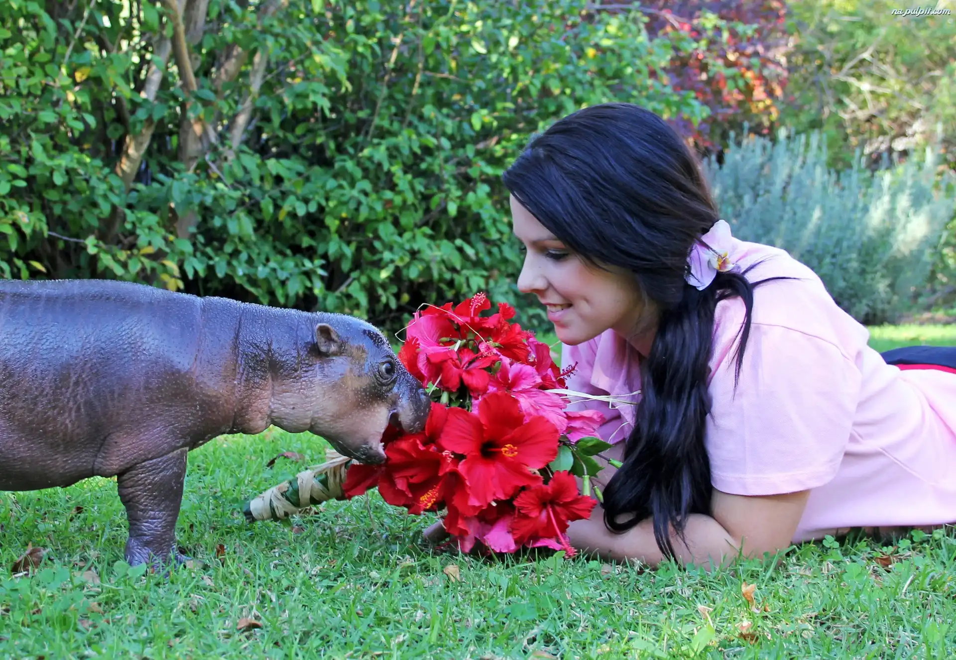 Kwiaty, Trawa Kobieta, Hipopotam, Czerwone Na Pulpit
