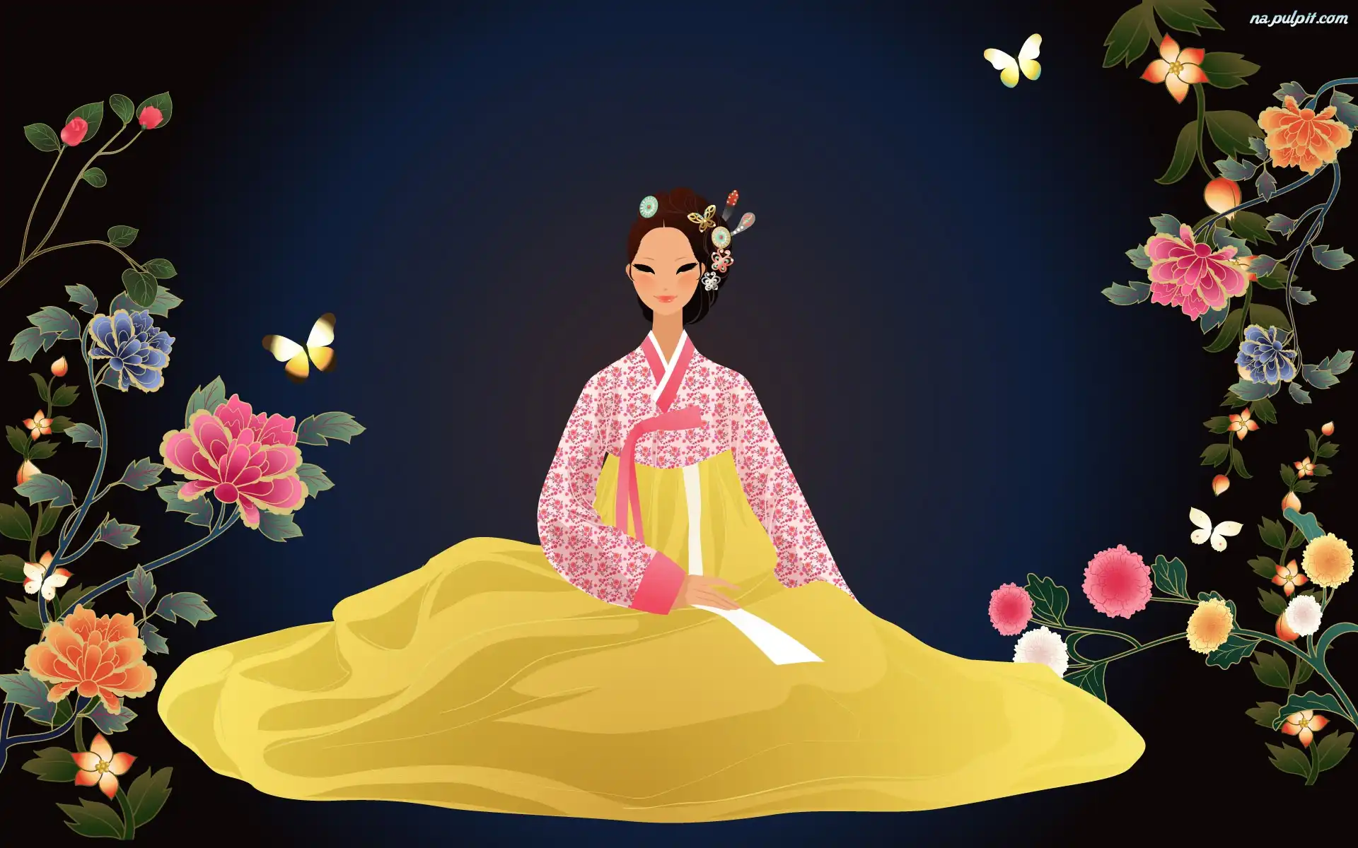 Kwiaty, Strój, Japonka, Ludowy Na Pulpit