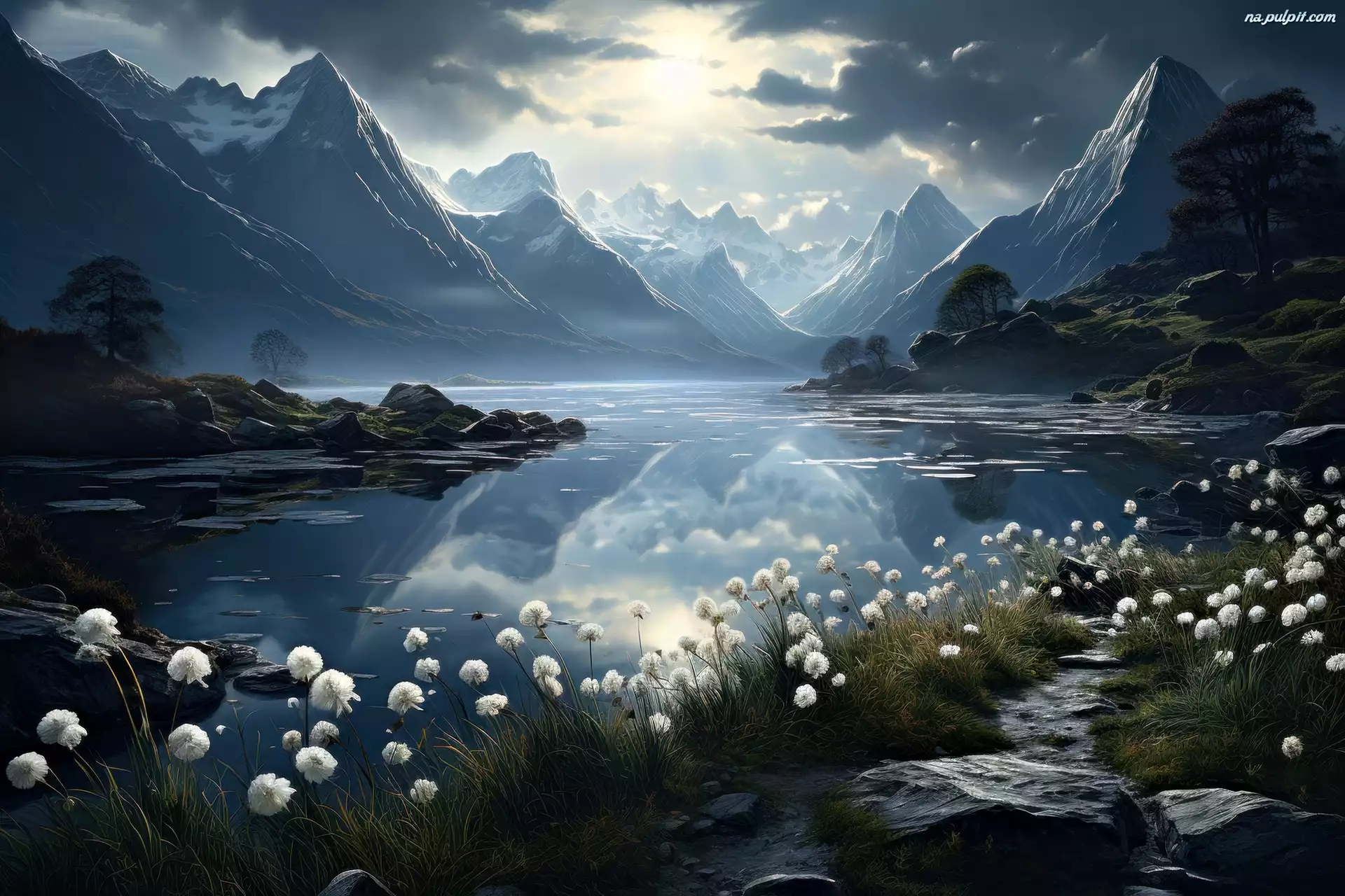 Góry, Kwiaty, Kamienie, Grafika, Dolina
