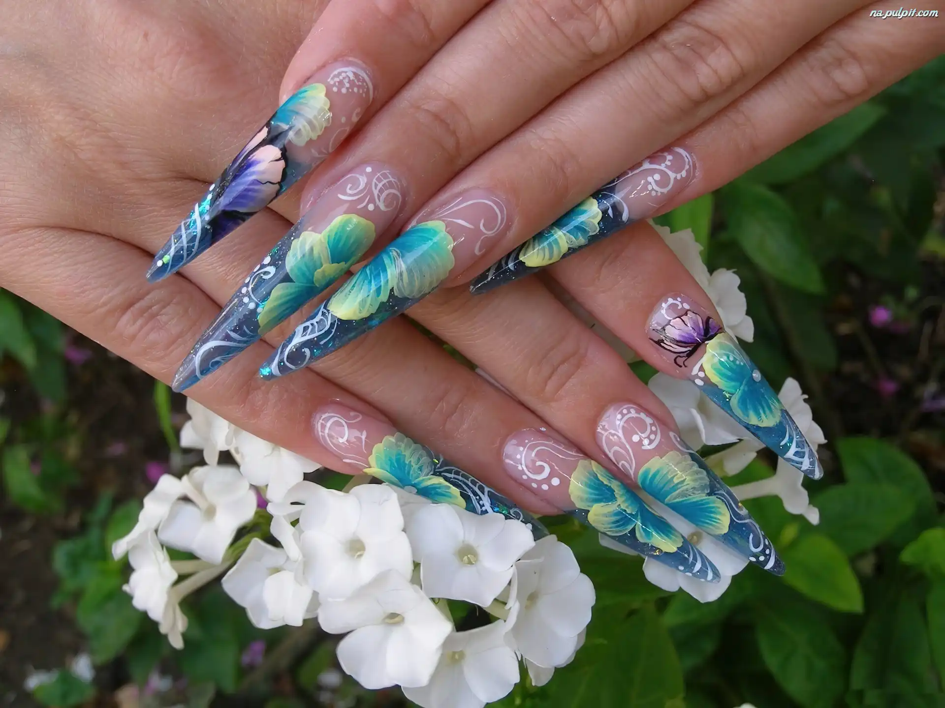 Kwiaty, Kolorowe, Dłonie, Kobiece, Paznokcie Na Pulpit