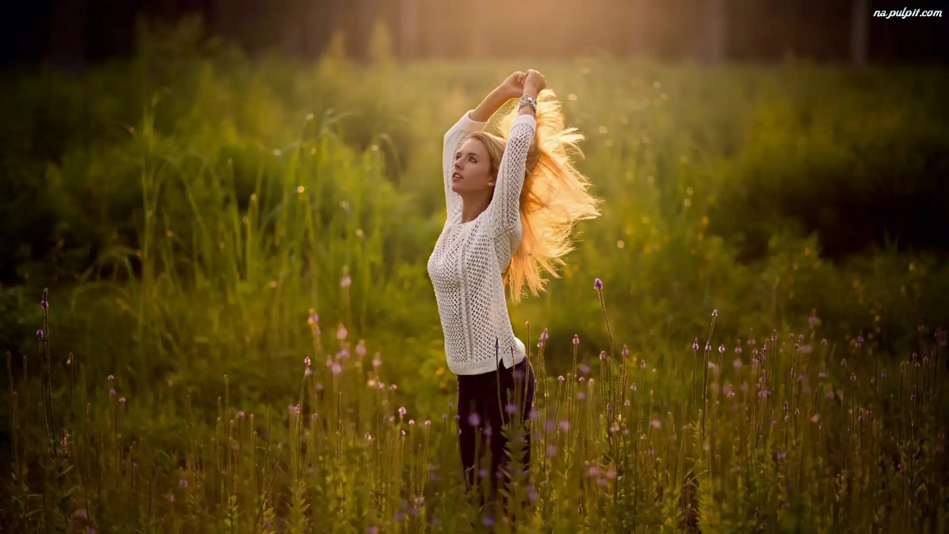 Kwiaty, Łąka, Kobieta, Polne Na Pulpit