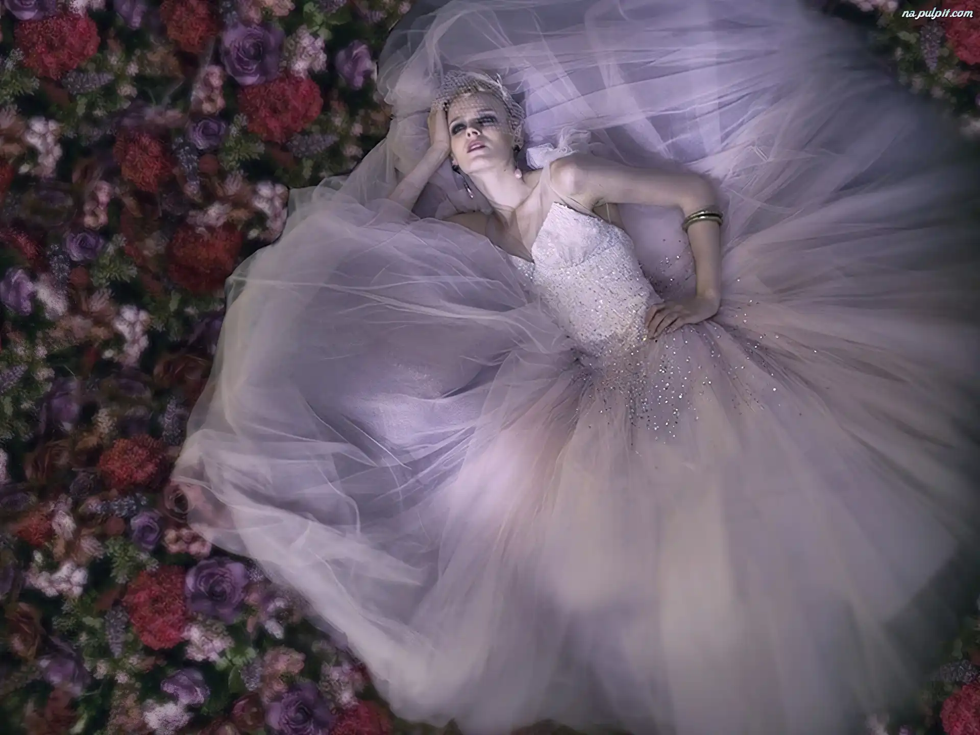 Kwiaty, Biała, Kobieta, Suknia
