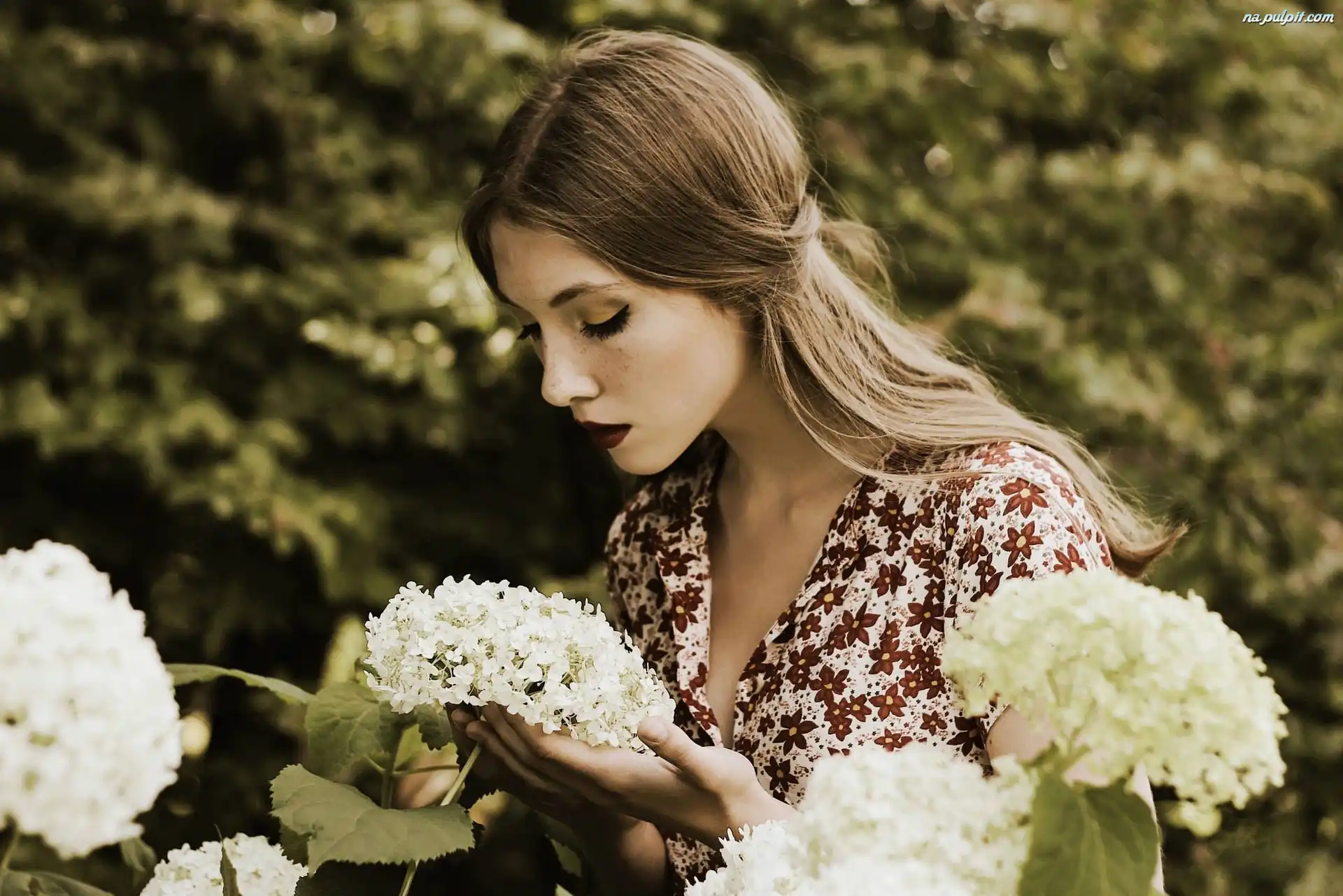Kwiaty, Makijaż, Blondynka, Kobieta, Białe Na Pulpit