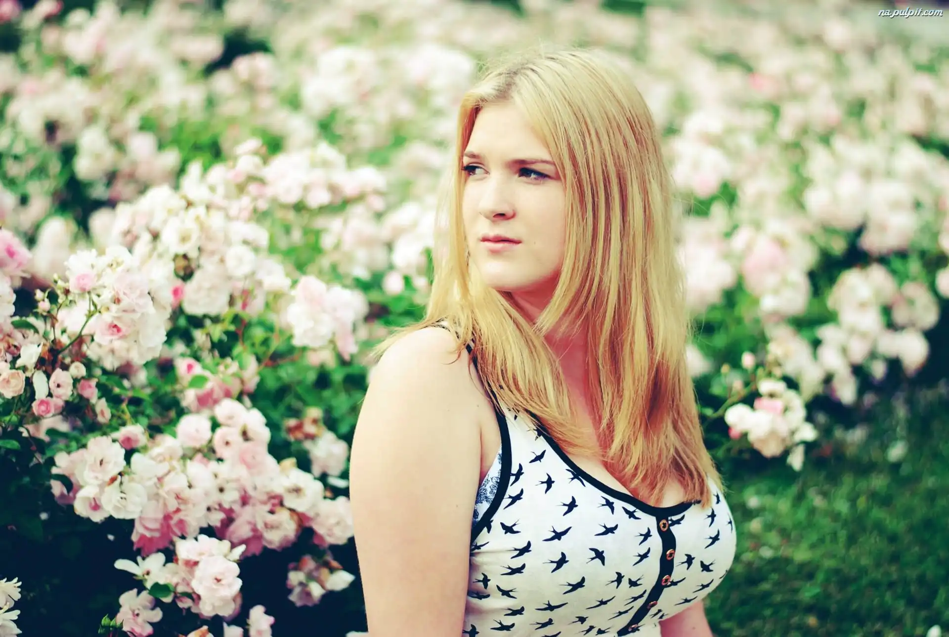 Kwiaty, Blondynka, Kobieta, Różowe Na Pulpit