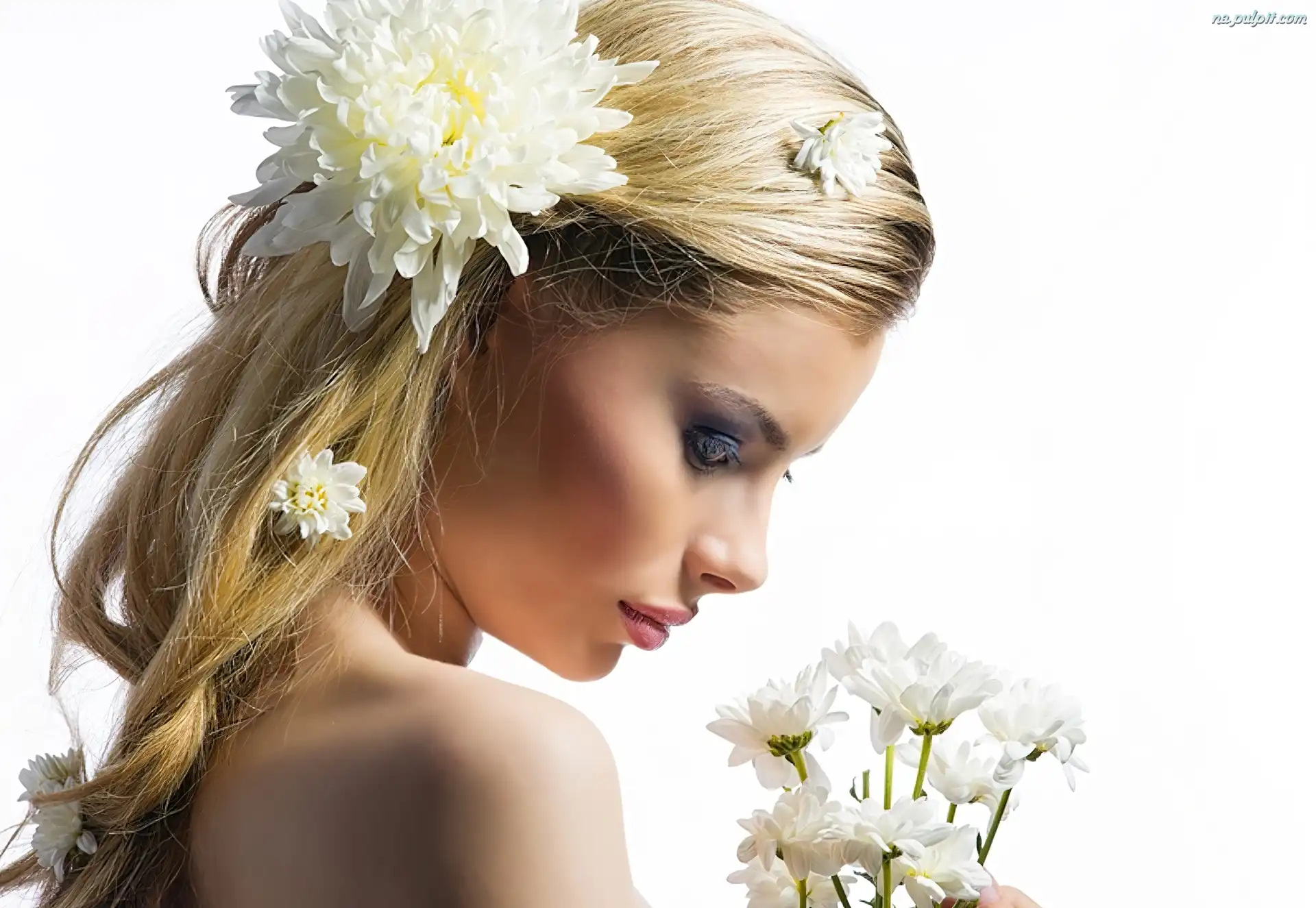 Kwiaty, Makijaż, Kobieta, Białe Na Pulpit