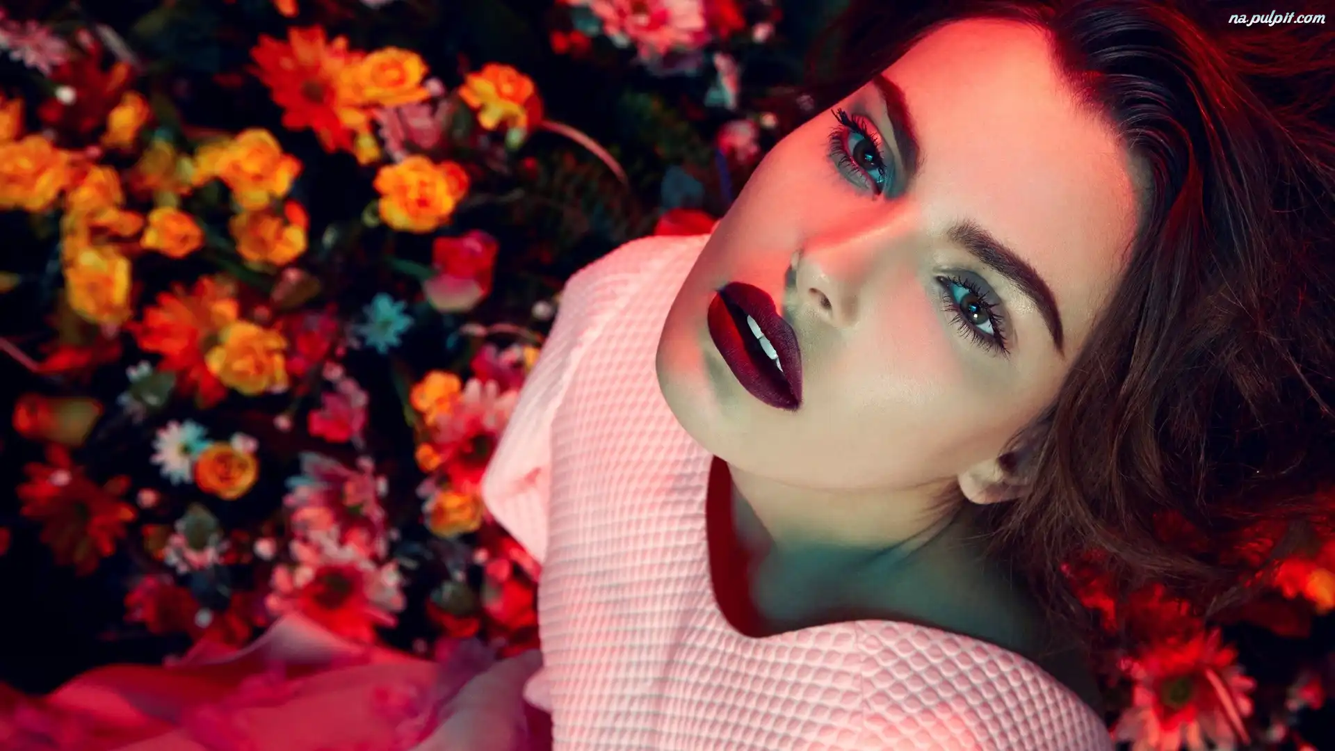 Kwiaty, Makijaż, Kobieta, Szatynka Na Pulpit