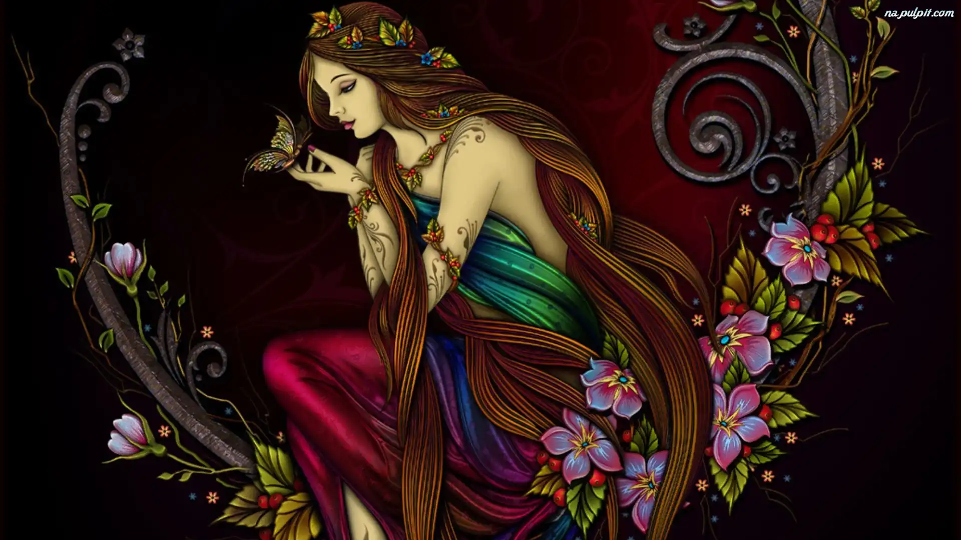 Kwiaty, Motyl, Kobieta, Tatuaże Na Pulpit