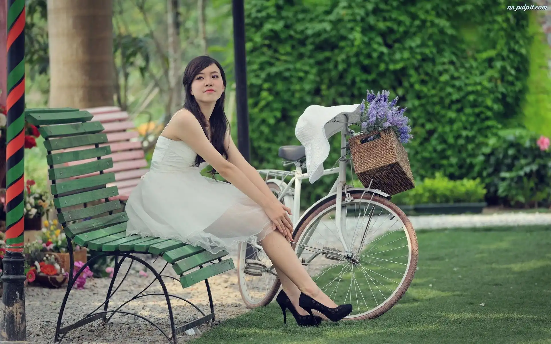 Kwiaty, Park, Kobieta, Rower Na Pulpit