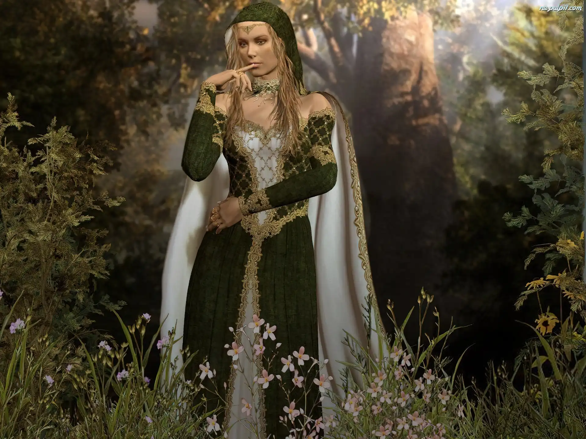Kwiaty, Peleryna, Kobieta, Drzewa Na Pulpit