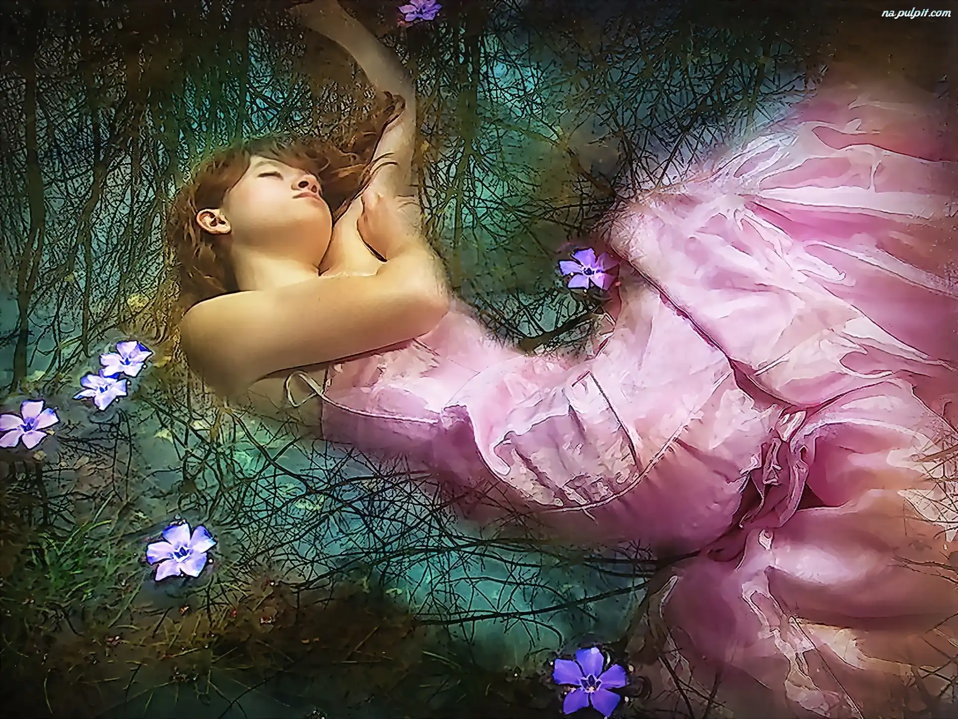 Kwiaty, Różowa, Kobieta, Suknia Na Pulpit