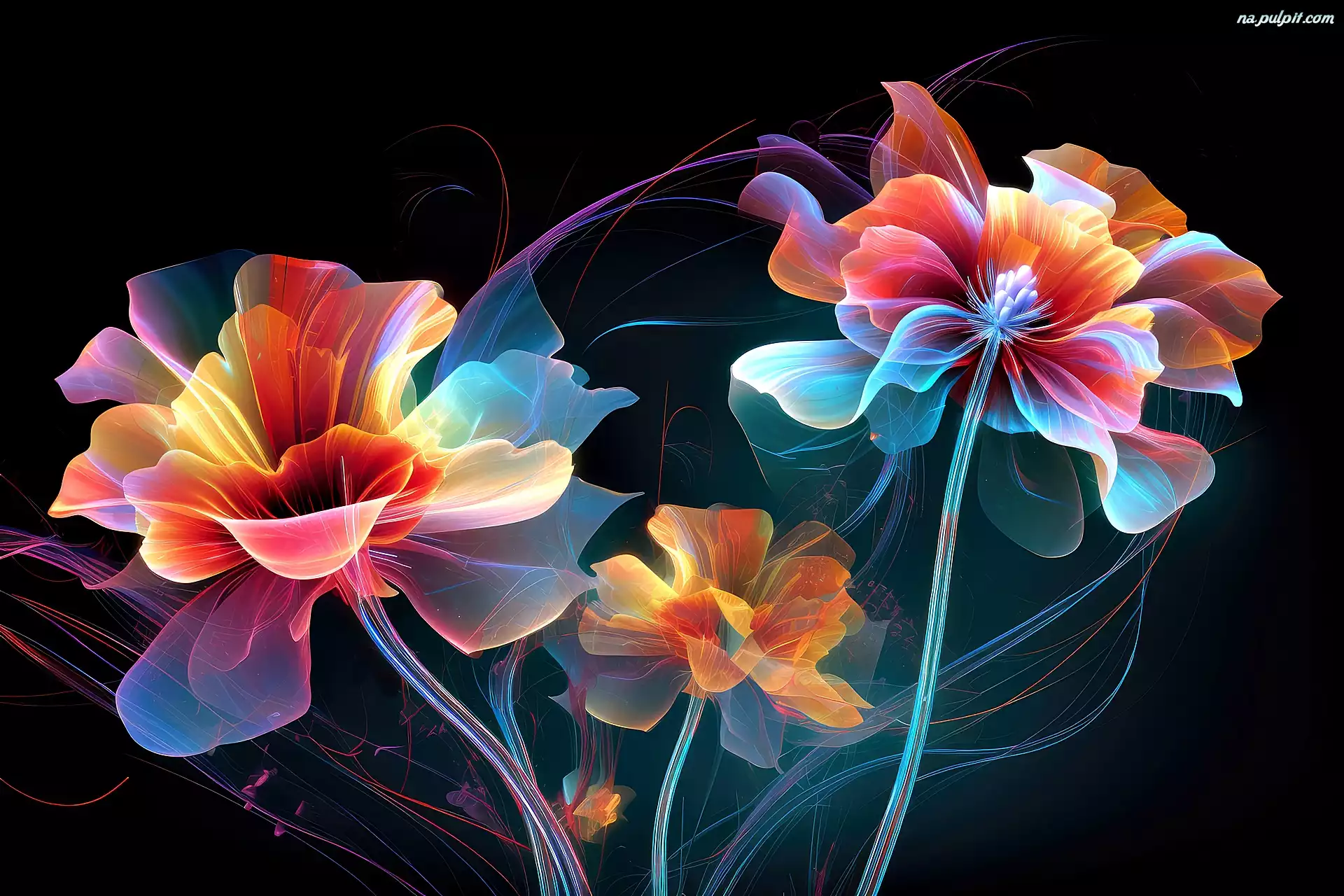 Tło, Kwiaty, Kolorowe, Grafika, Czarne Na Pulpit