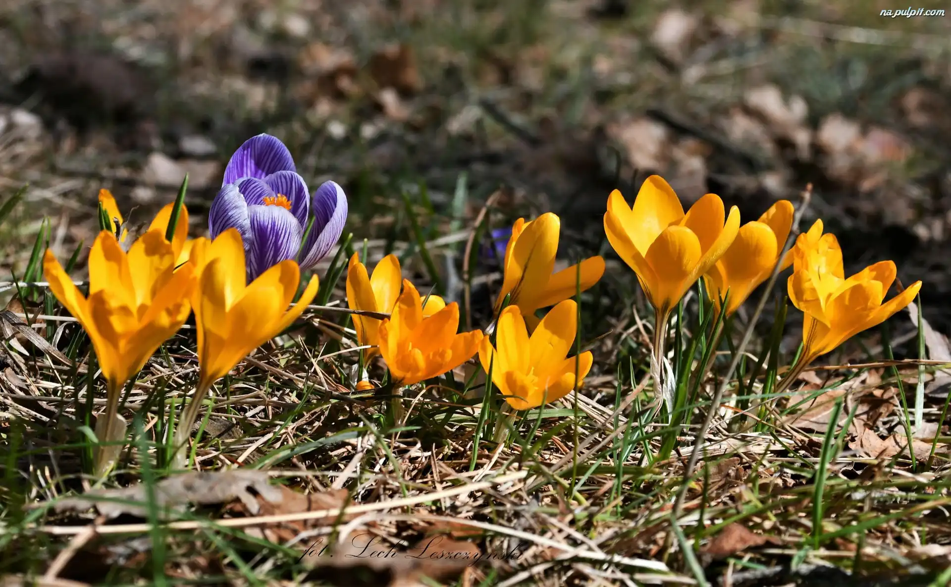 Krokusy, Kwiaty, Kolorowe, Trawa, Żółte Na Pulpit