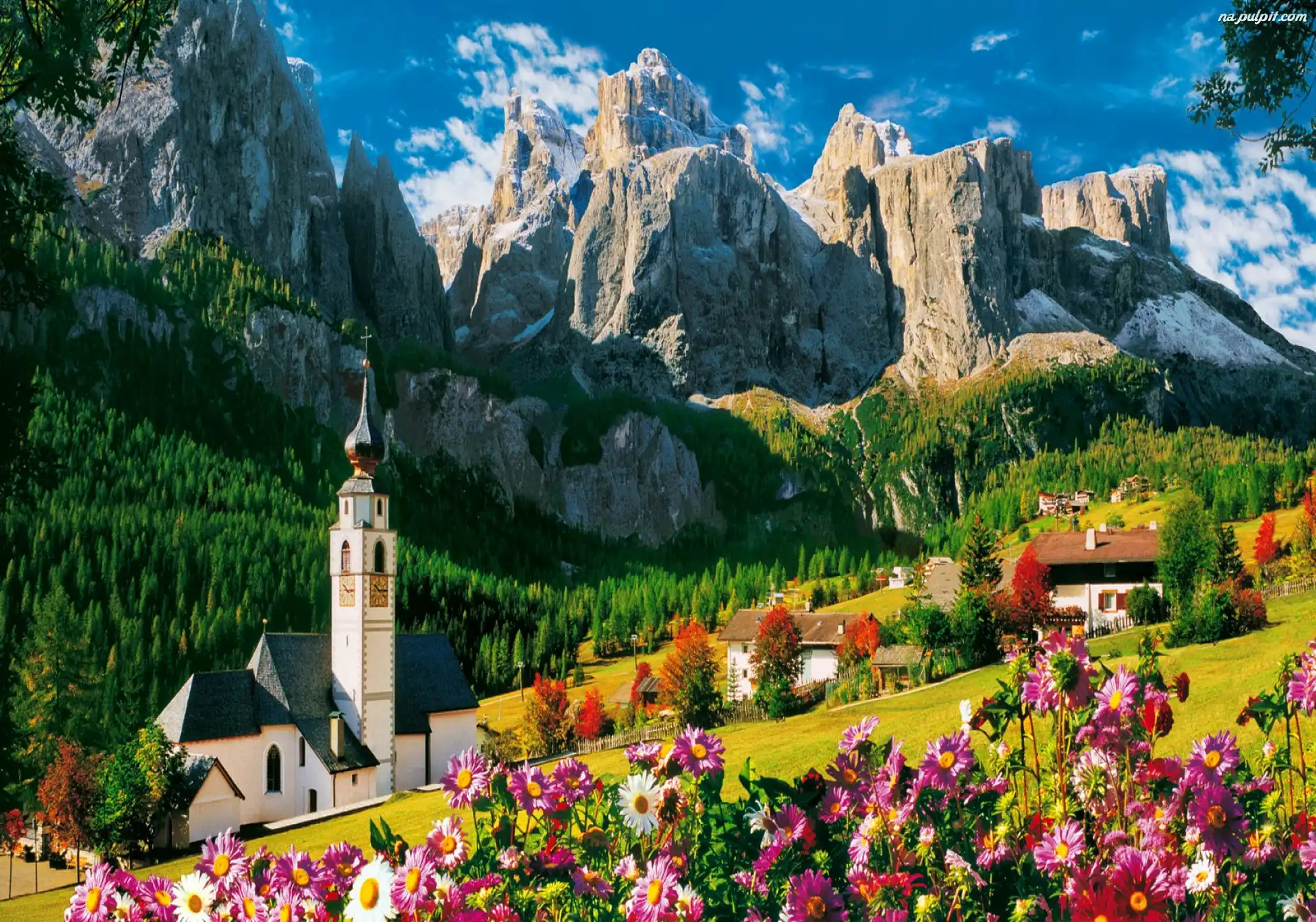 Kwiaty, Domy, Kościół, Góry Na Pulpit