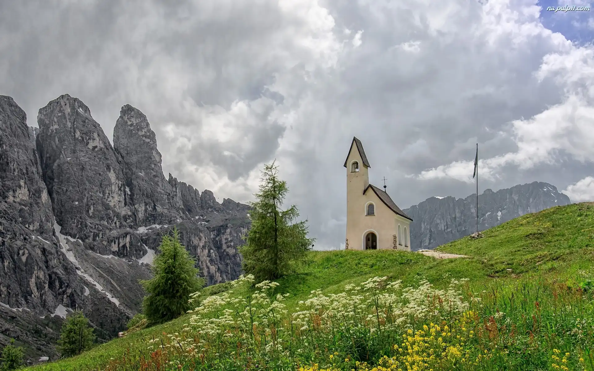 Kwiaty, Góry, Kościółek, Łąka Na Pulpit
