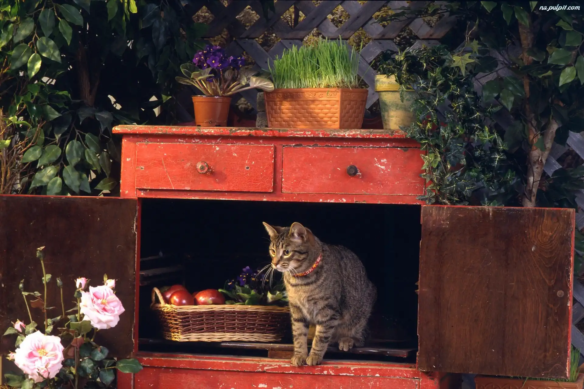 Kwiaty, Stara, Kot, Szafka