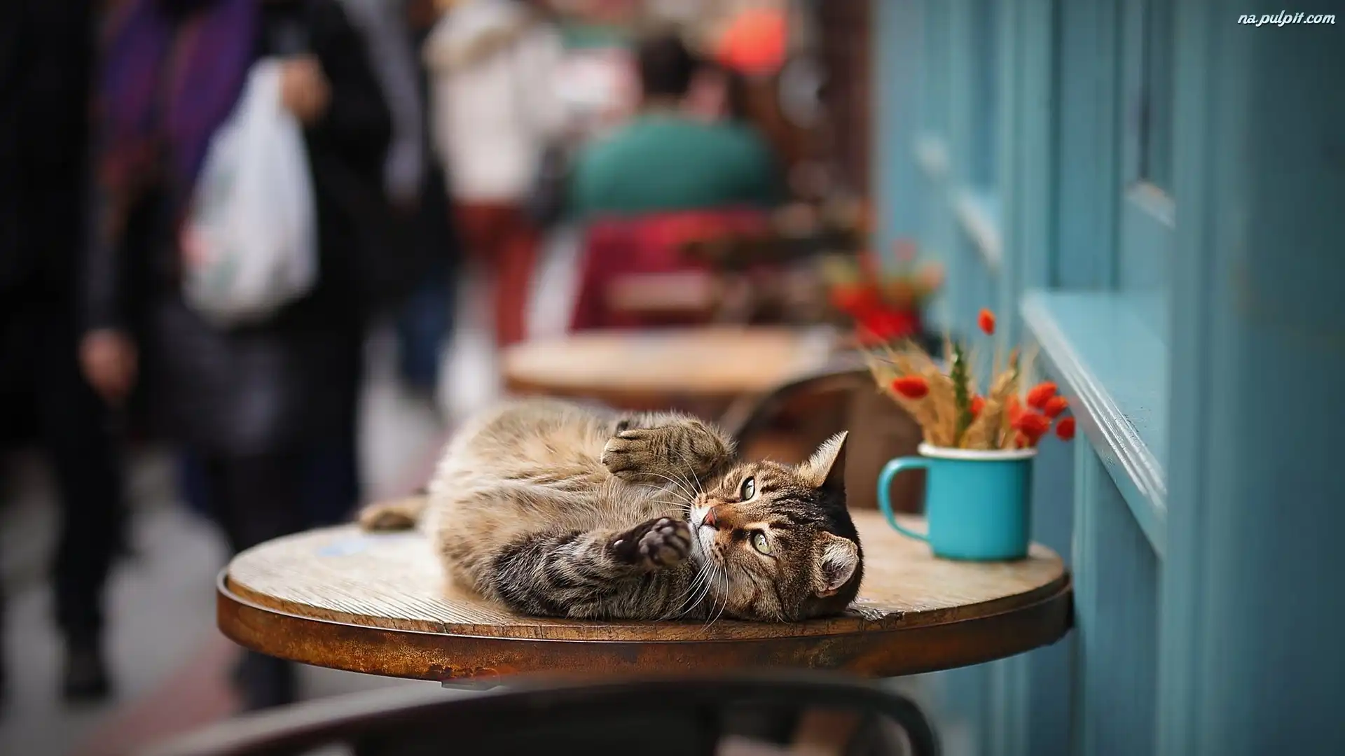 Kwiaty, Stolik, Kot, Kubek Na Pulpit