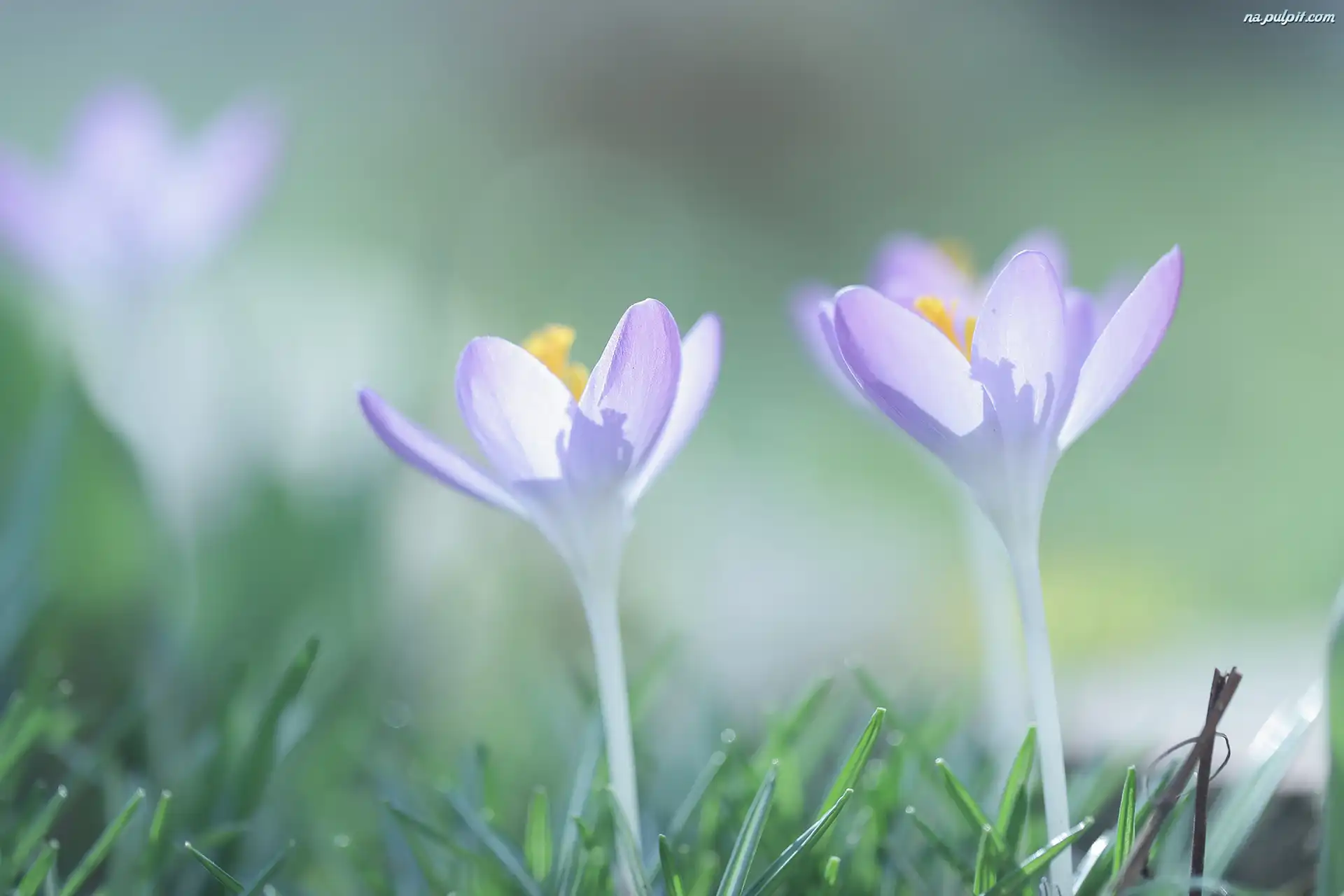 Kwiaty, Fioletowe, Krokusy, Dwa