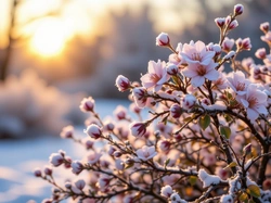 Ośnieżone, Kwiaty, Krzew, Grafika AI