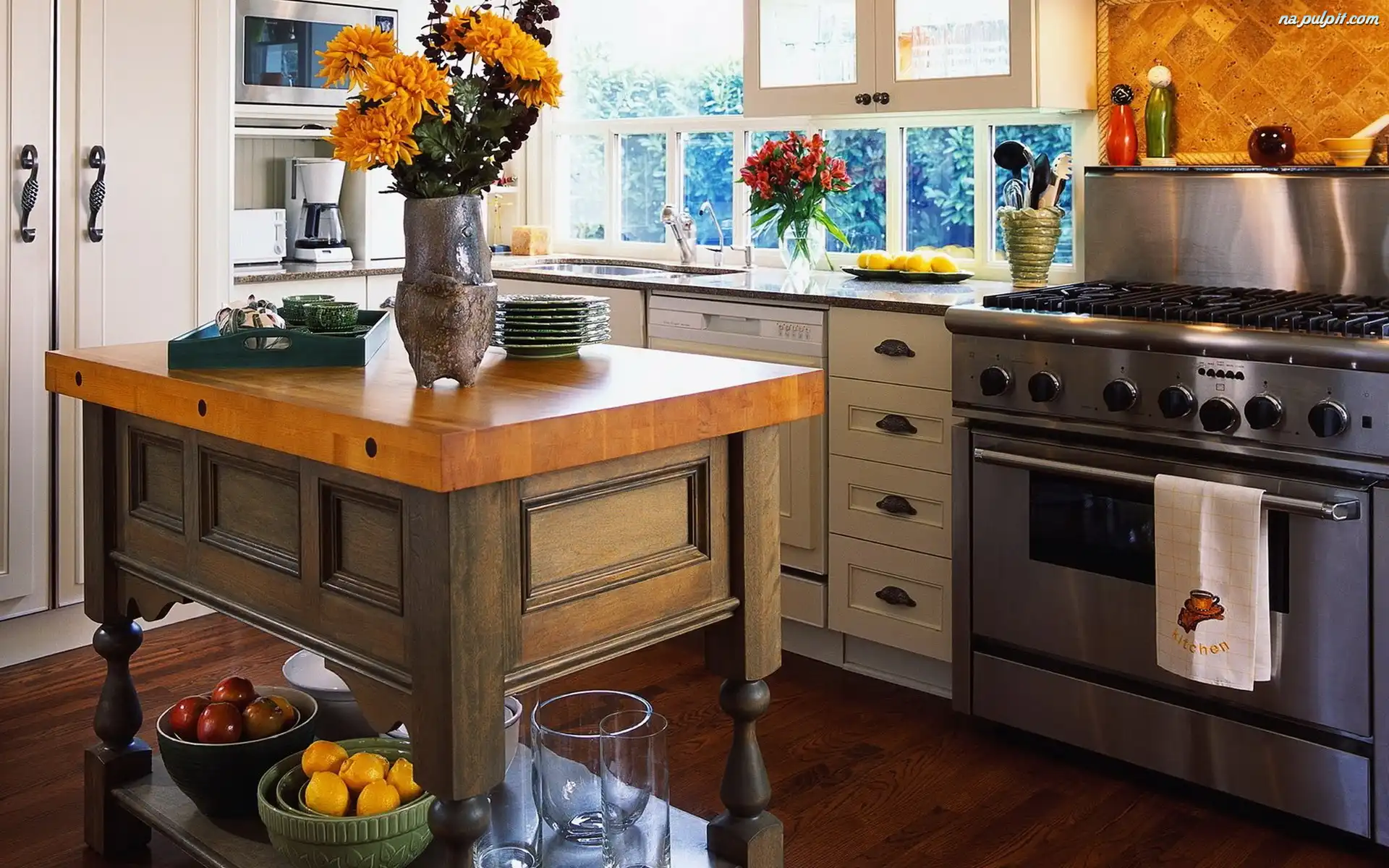 Kwiaty, Stół, Kuchnia, Owoce Na Pulpit