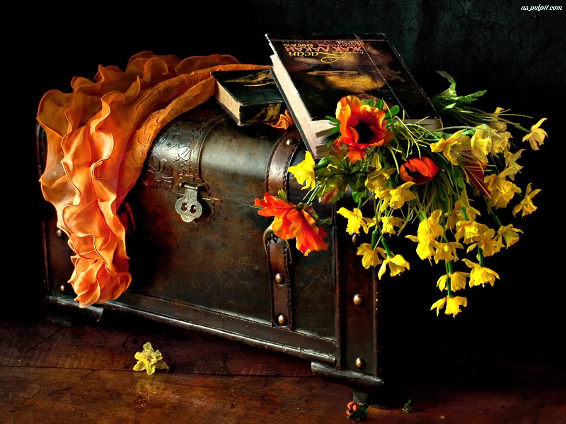Kufer, Kwiaty, Książka Na Pulpit