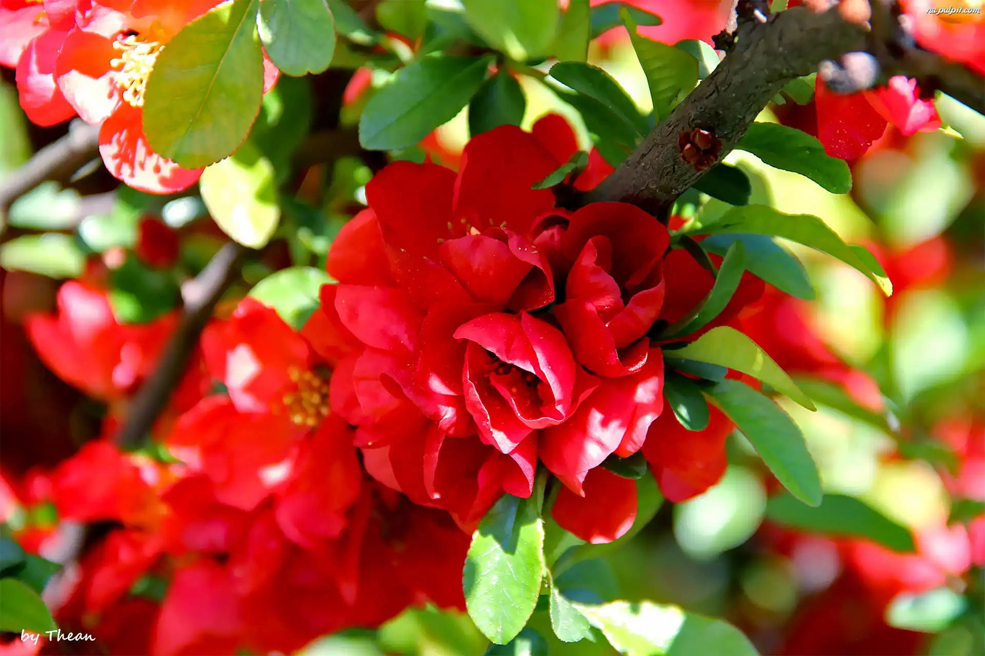 Kwiaty, Pigwa, KwitnÄ…ca, Czerwone