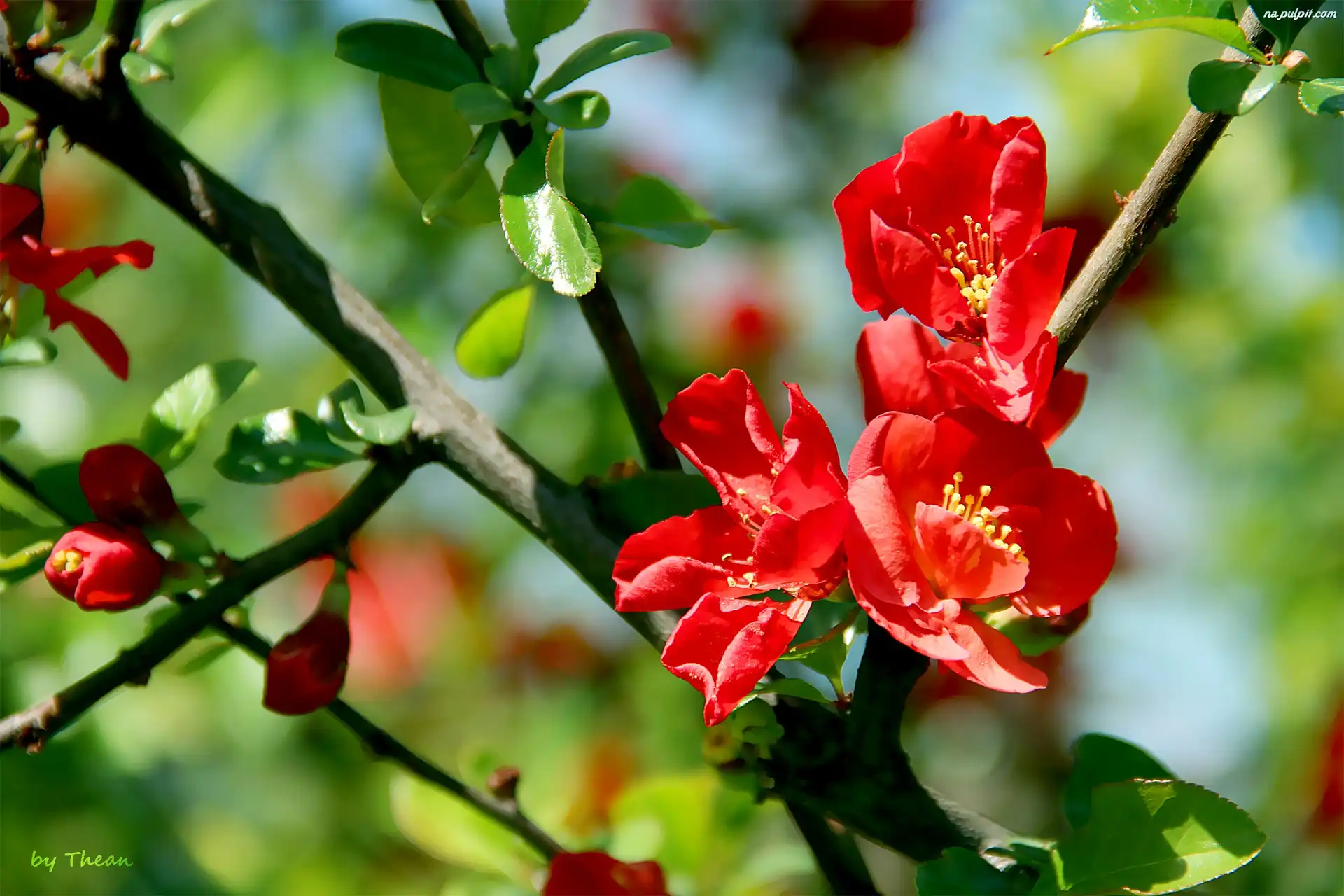 Kwiaty, Pigwa, Krzew, KwitnÄ…cy, Czerwone Na Pulpit