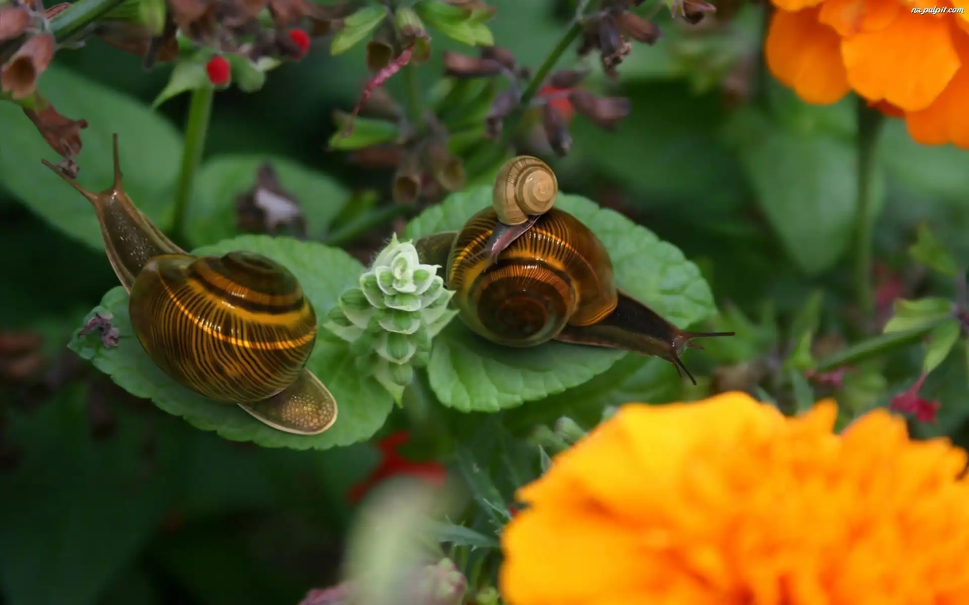 Kwiaty, Liście, Ślimaki, Rośliny Na Pulpit