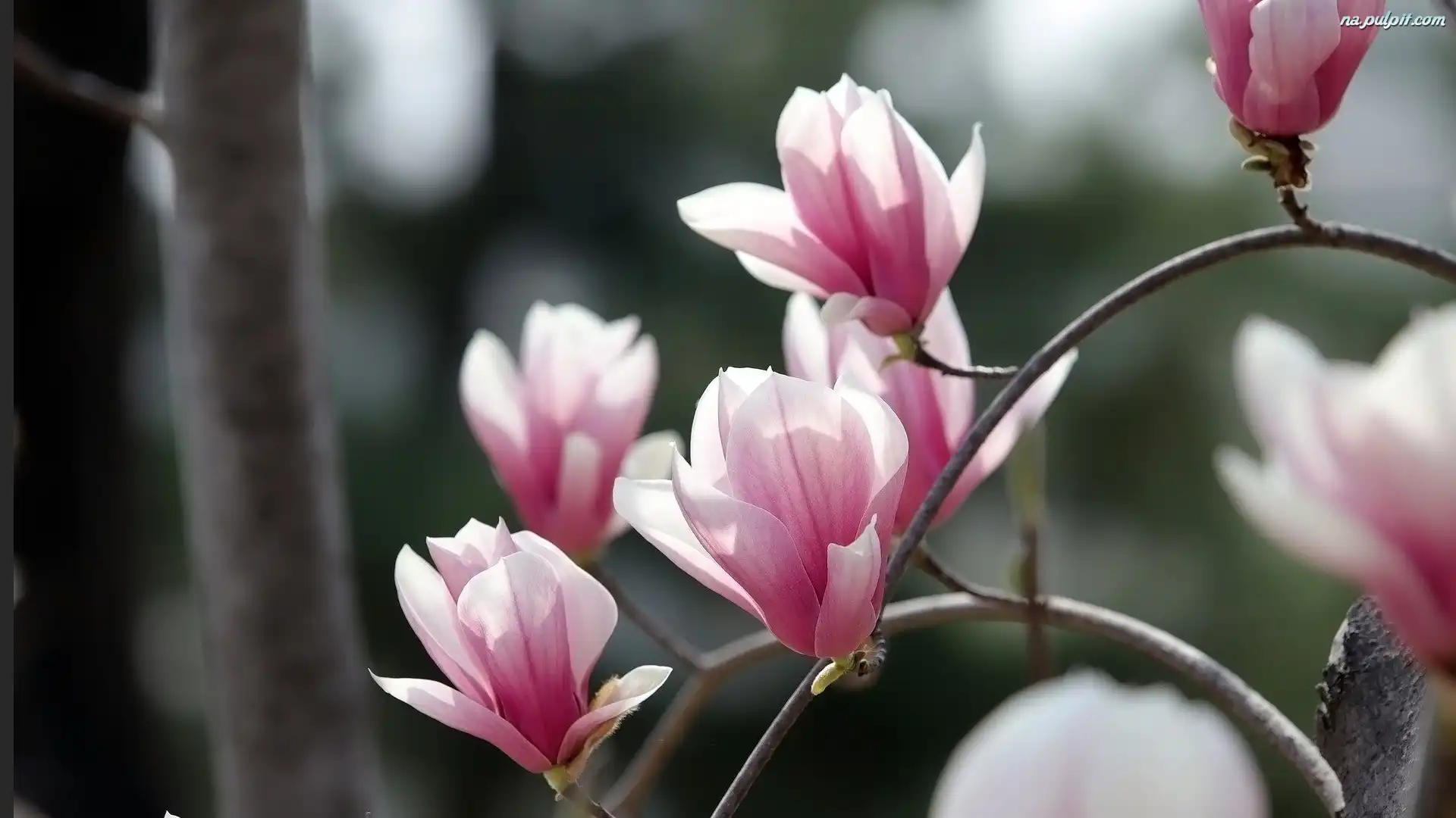 Magnolie, Biało-różowe, Kwiaty Na Pulpit