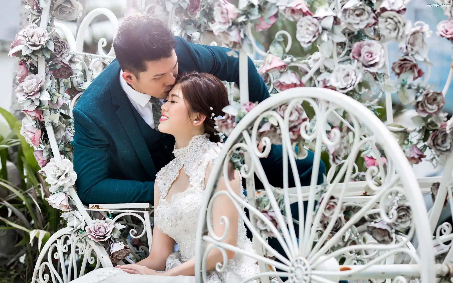 Kwiaty, Mężczyzna, Kobieta, Para młoda, Ślub